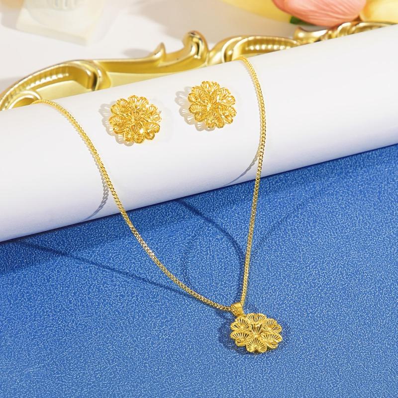 Surprise your friends with these three sets of women's golden jewelry featuring snowflake shaped pendants necklaces and earrings. The perfect holiday gift!