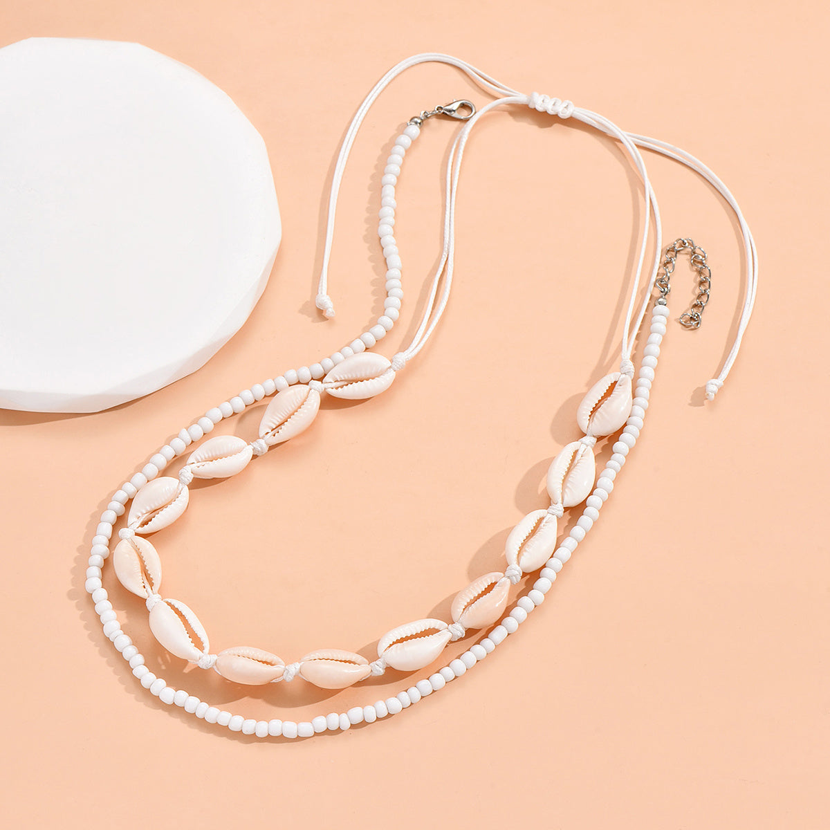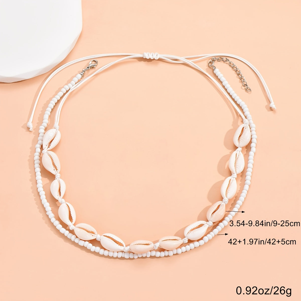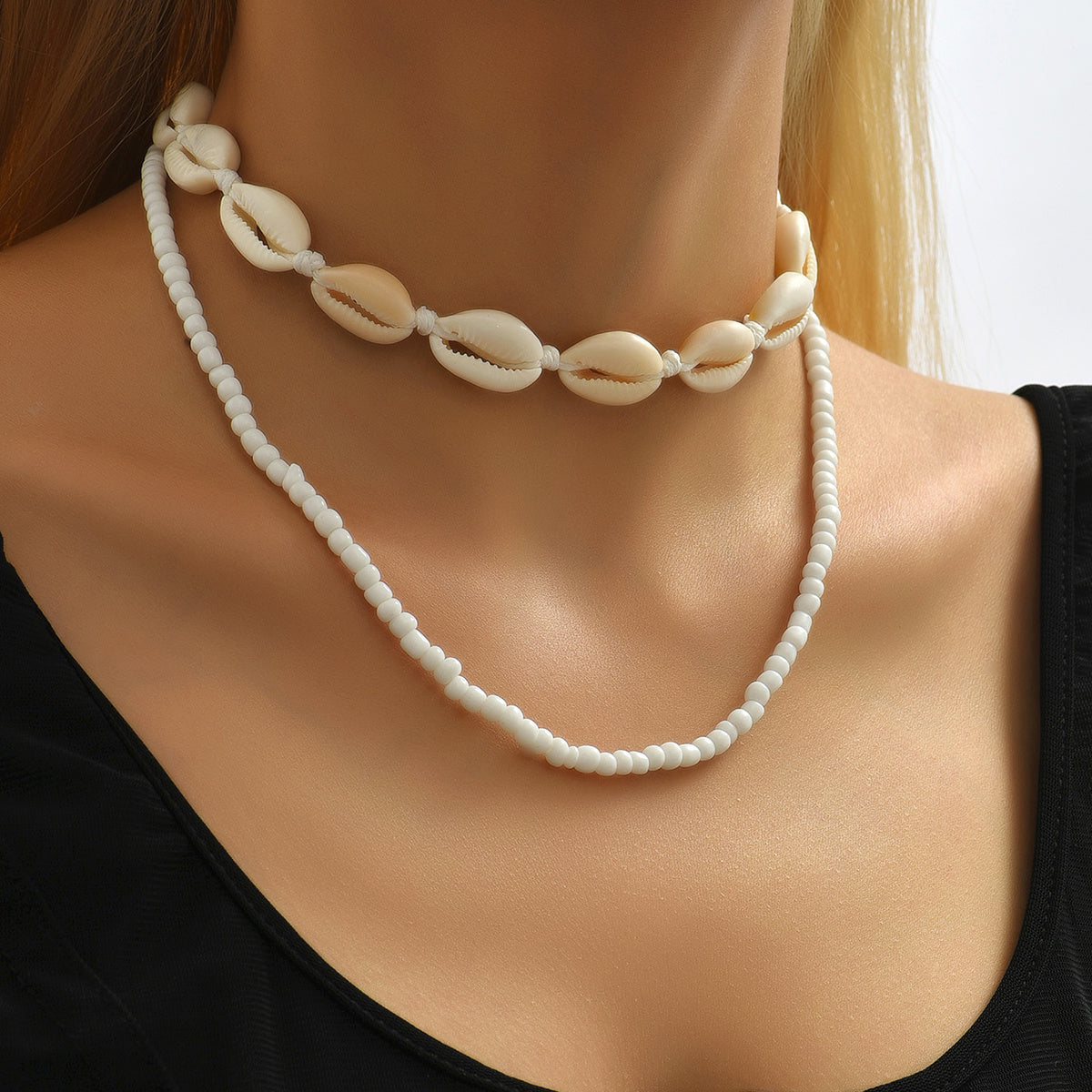 This set includes 2 choker necklaces with shell-shaped beads and tiny rice beads. Perfect for summer beach clothing and jewelry decoration.