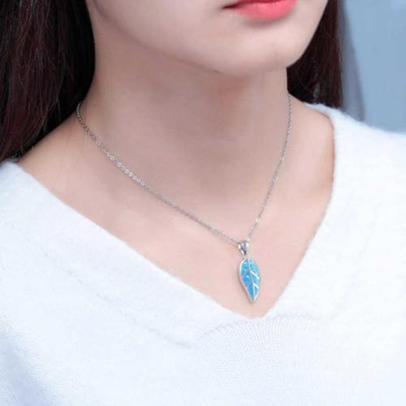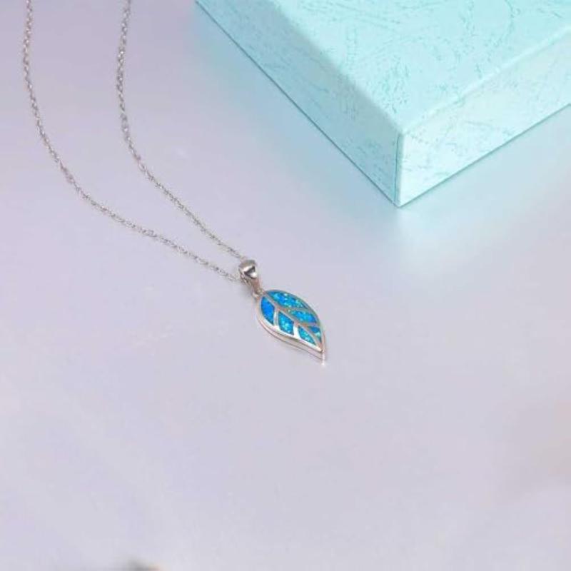 Add a touch of glamour to your outfit with this stunning silver plated opal leaf pendant necklace. Perfect for teen girls who want to stay on trend with a sparkly accessory.