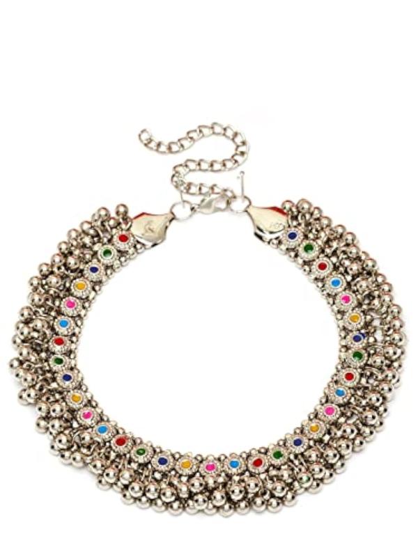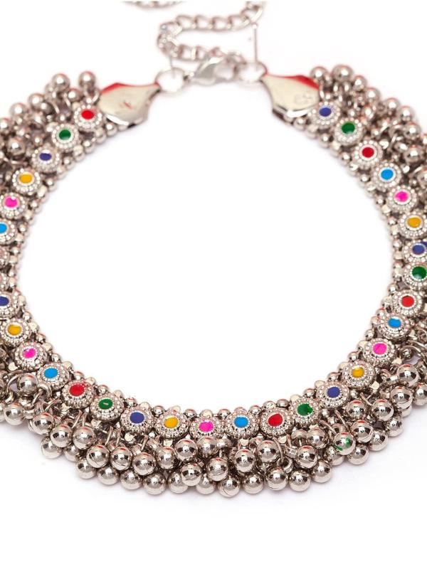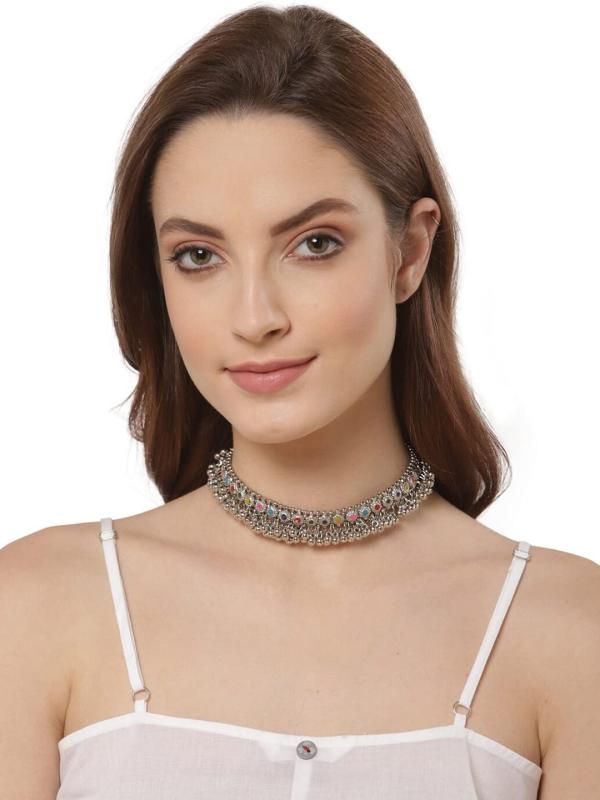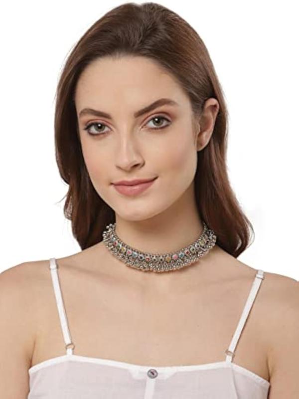 Elegant silver-plated choker necklace with oxidised touch for a traditional look.