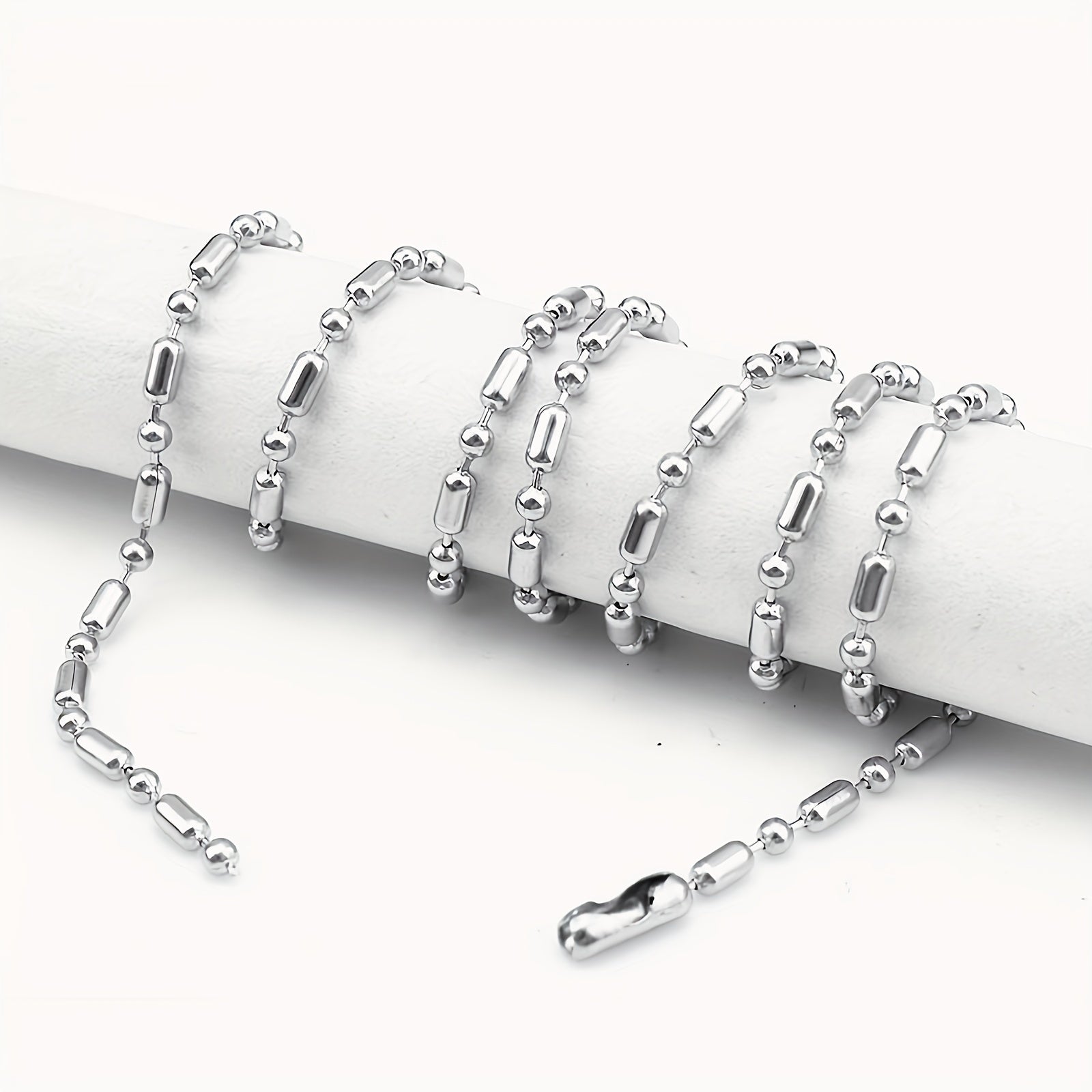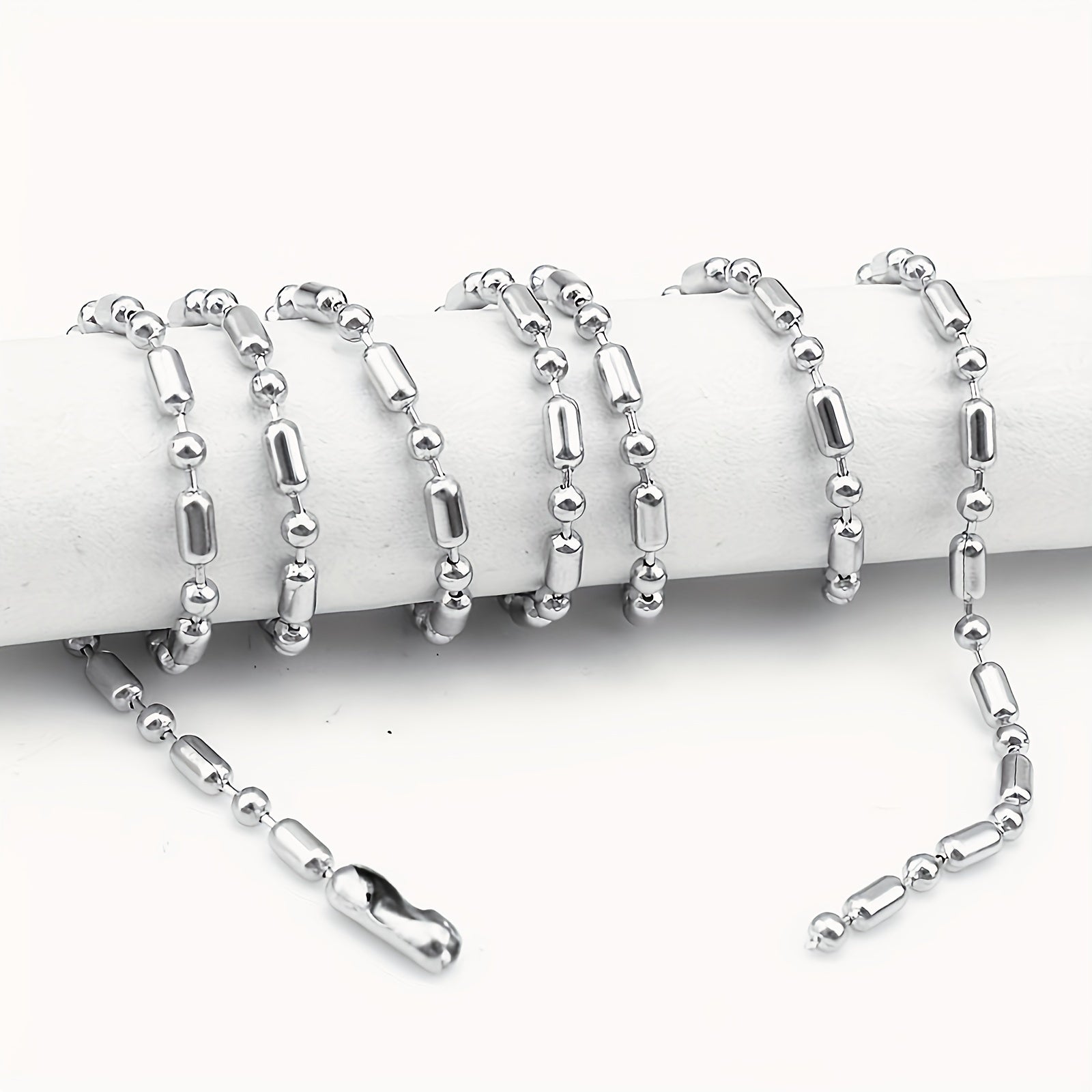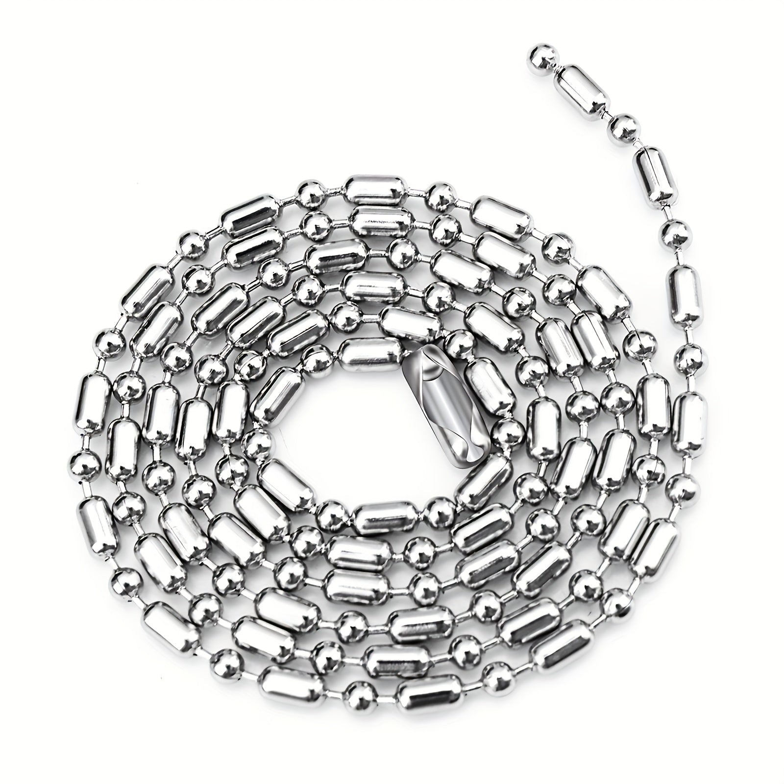 This stylish silver round beads chain necklace is made of stainless steel, suitable for both men and women.