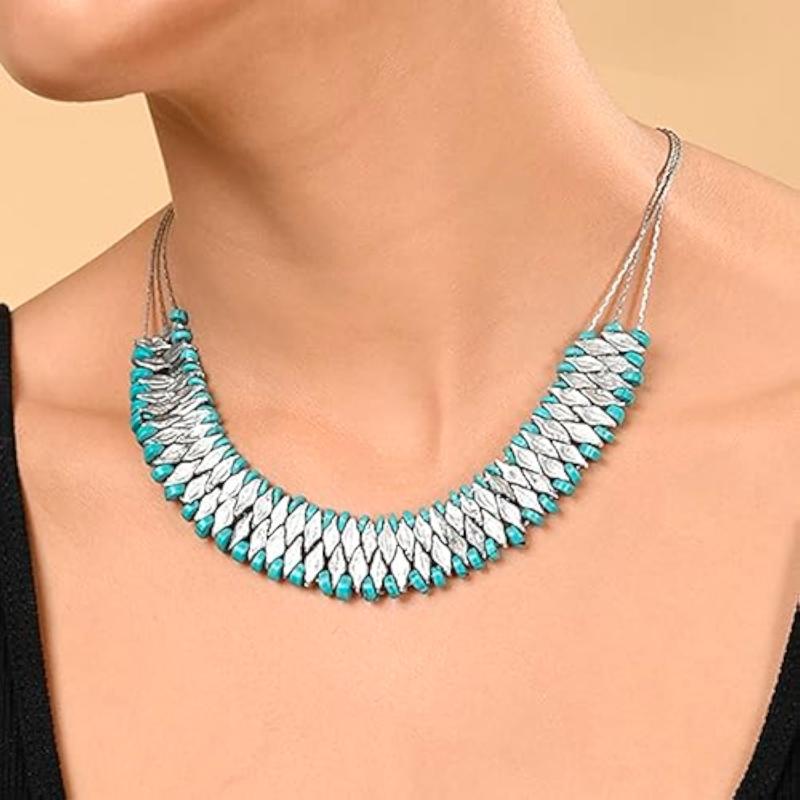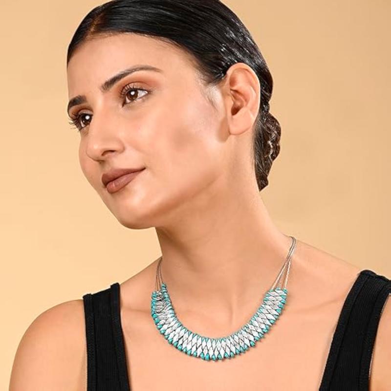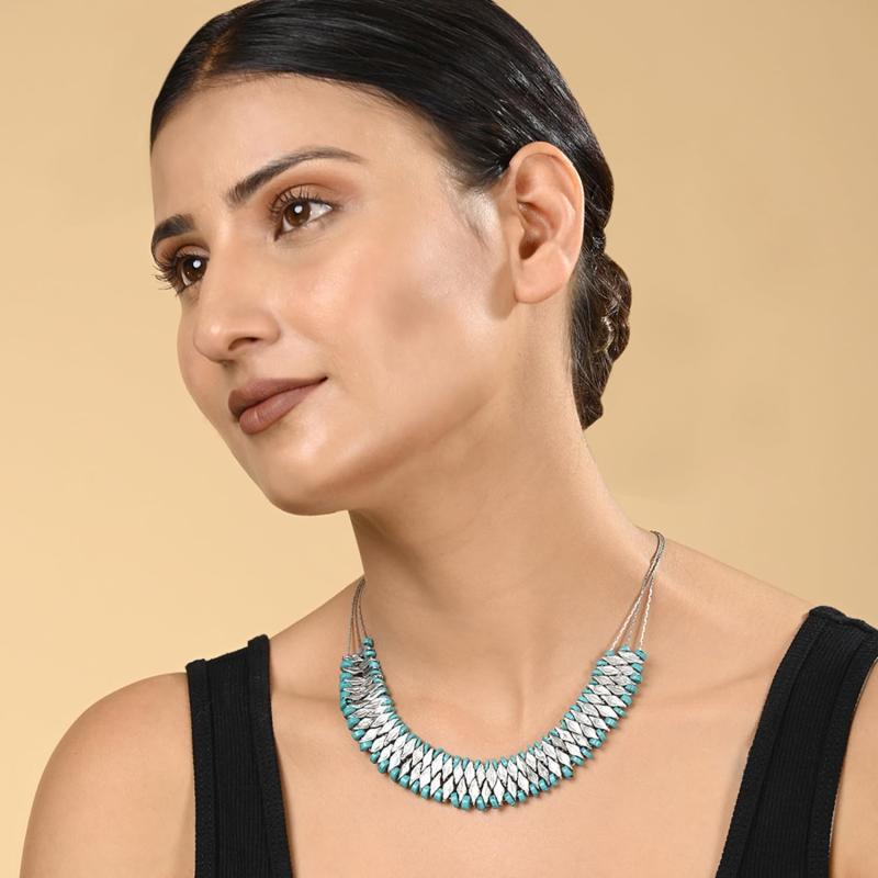 This elegant silver necklace features turquoise tyre pendant. It is anti-tarnish, light weight and suitable for daily, party or office wear. Stay stylish with this latest jewellery piece.