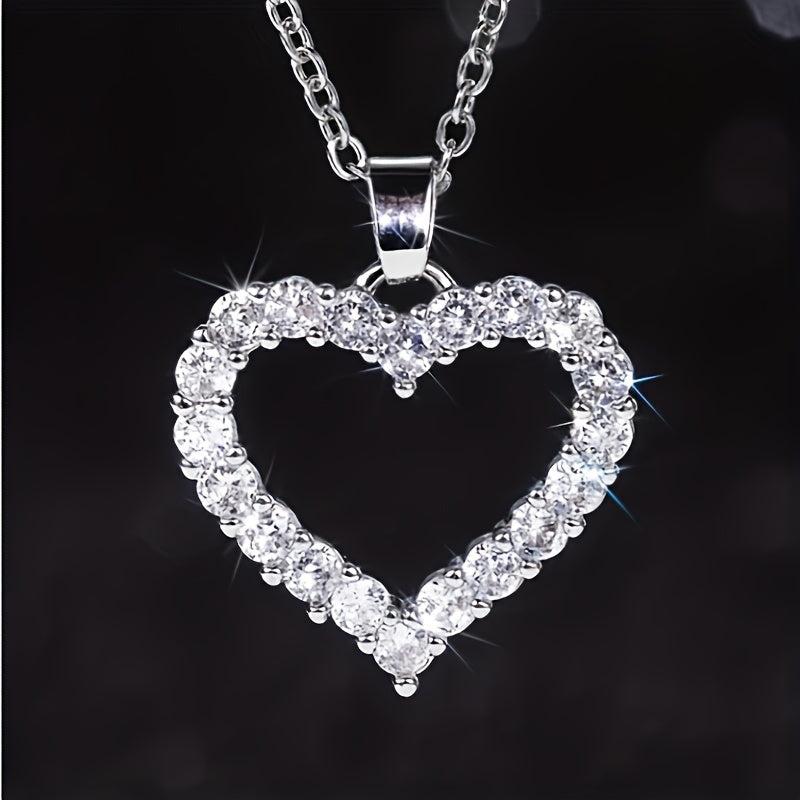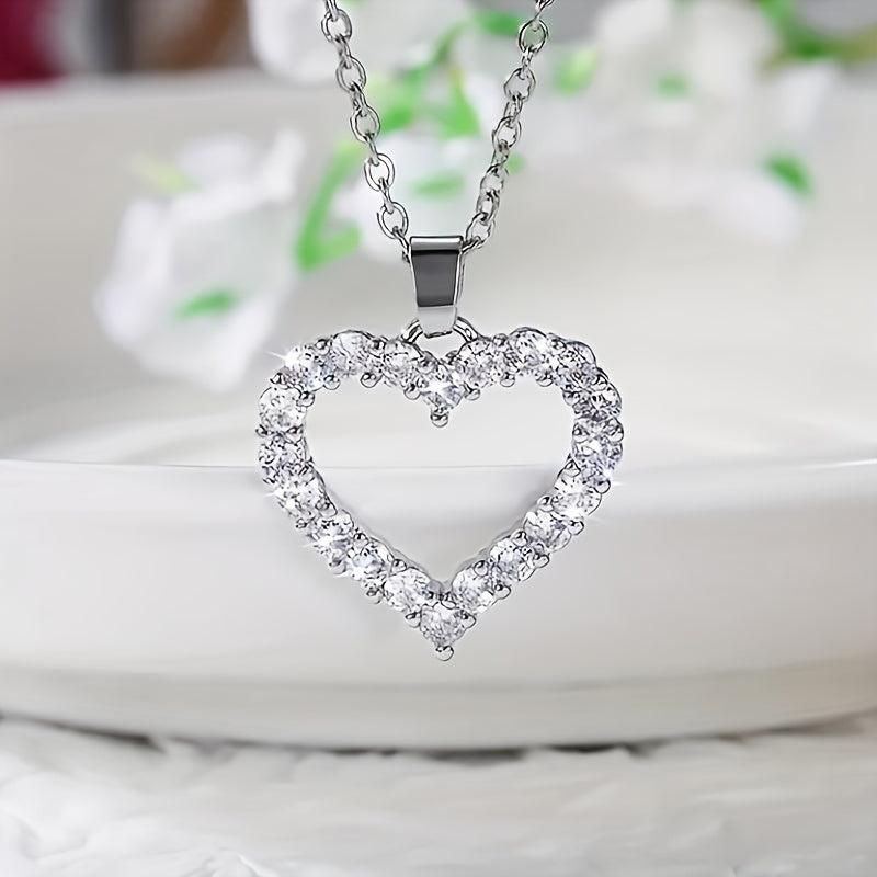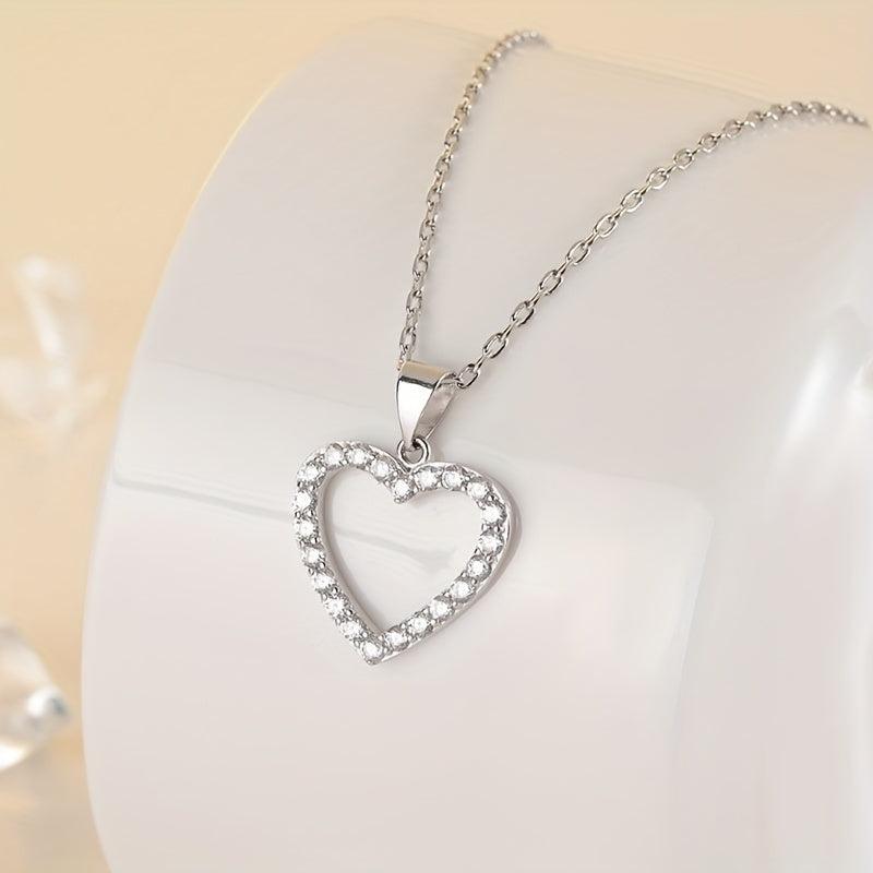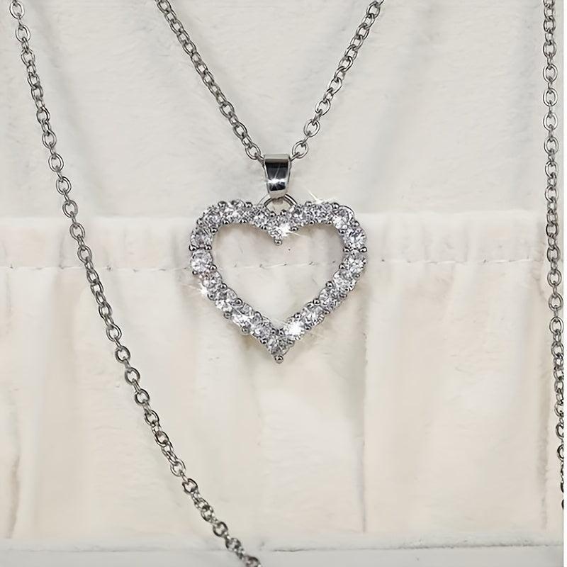 This stylish necklace features a silvery rhinestone love pendant made of stainless steel, perfect for both men and women.