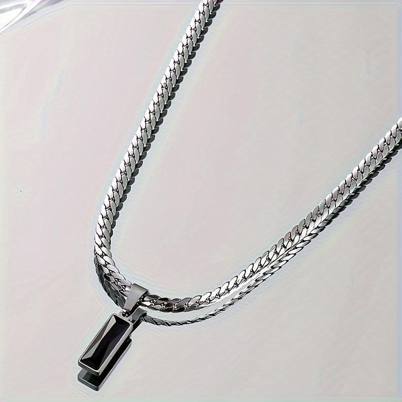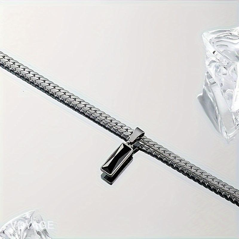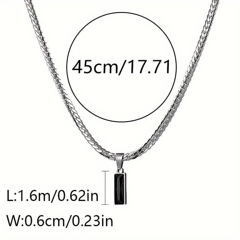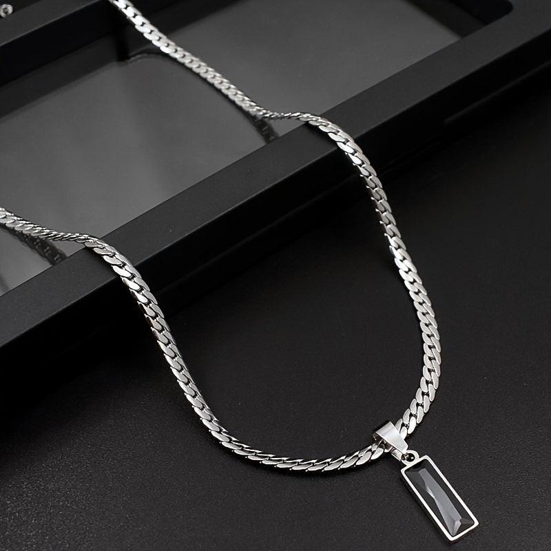 This pendant necklace features a stylish design with a silvery titanium stainless steel glass pendant. The snake bone chain adds a street-style element, making it perfect for everyday wear.