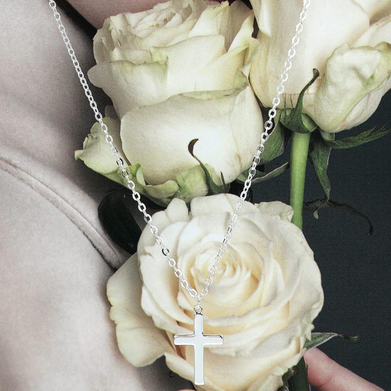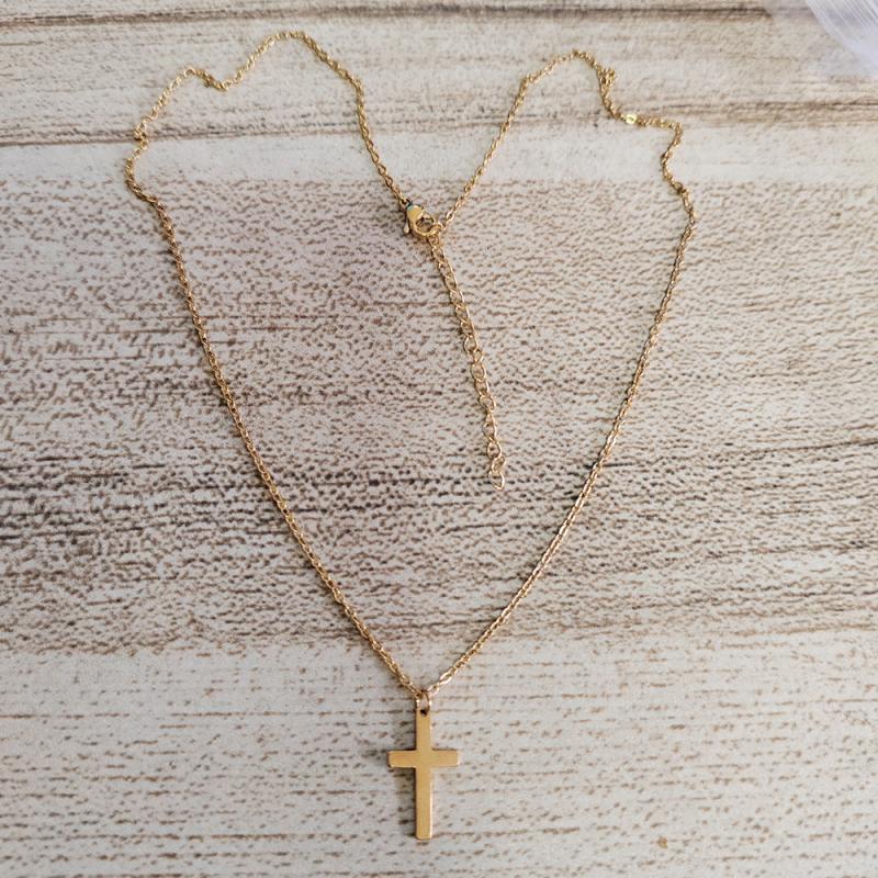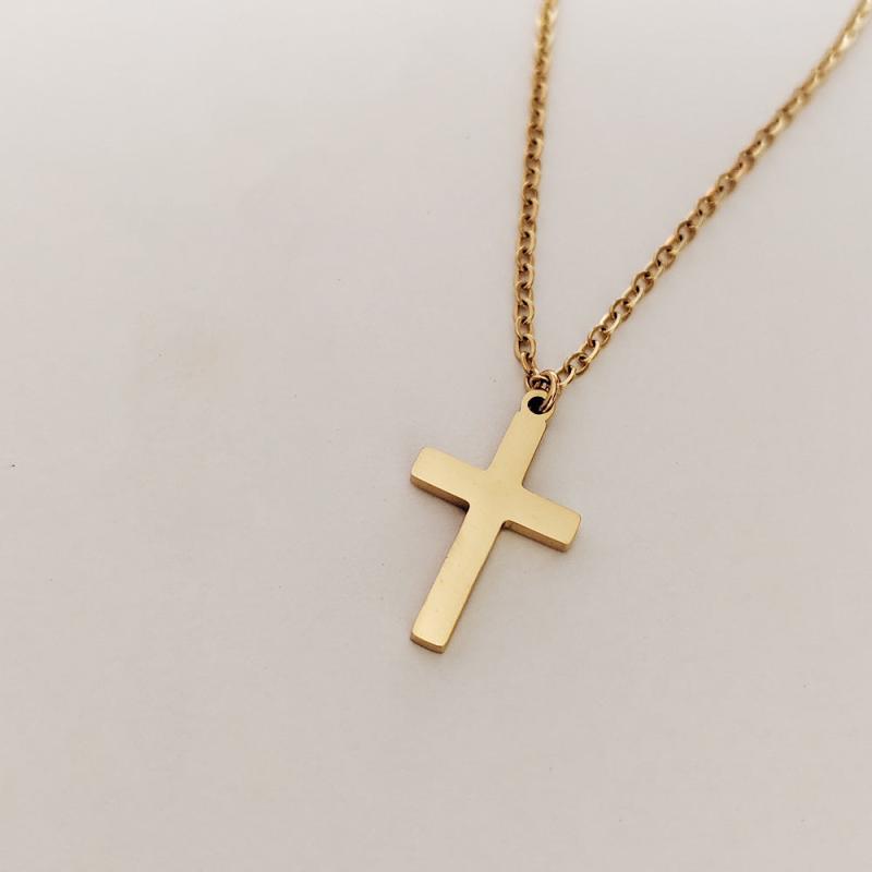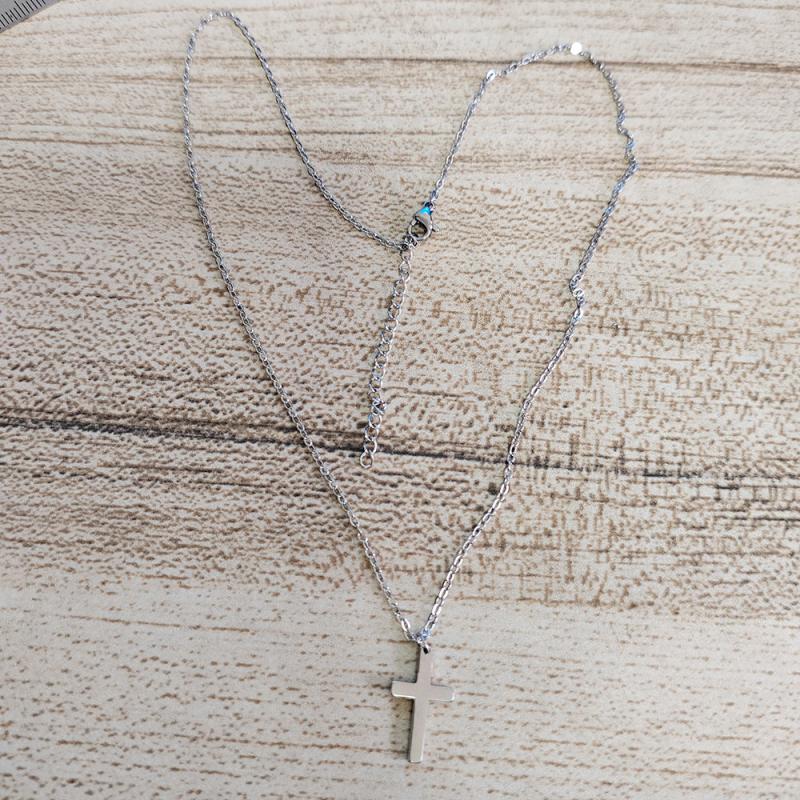 This minimalist cross pendant necklace is perfect for casual attire or as a gift. Made of durable stainless steel, it is tarnish resistant and features a plain smooth design.