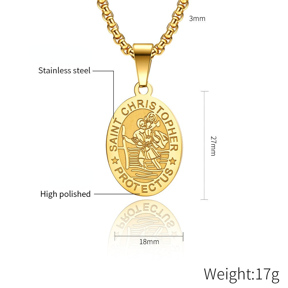 This men's necklace features a St Christopher pendant made from high-quality titanium steel. It's a stylish and meaningful piece of jewelry.