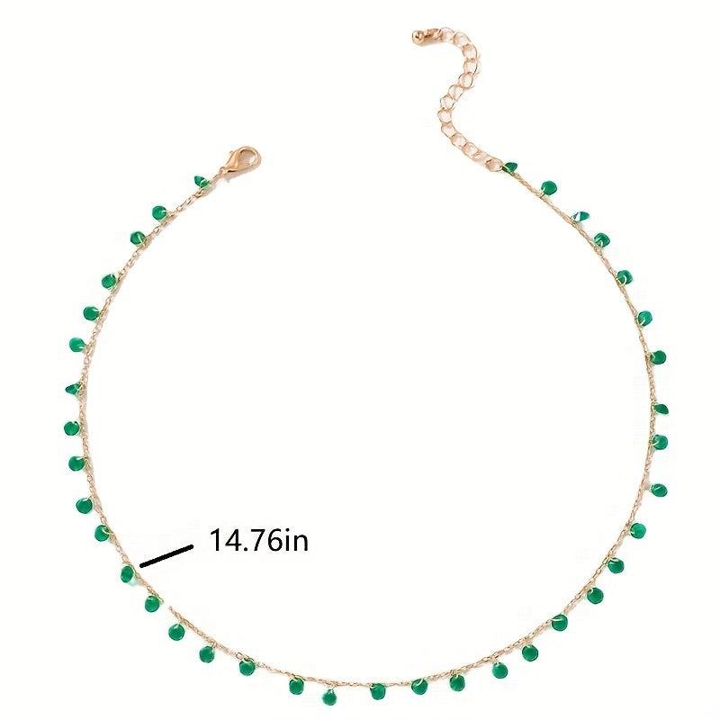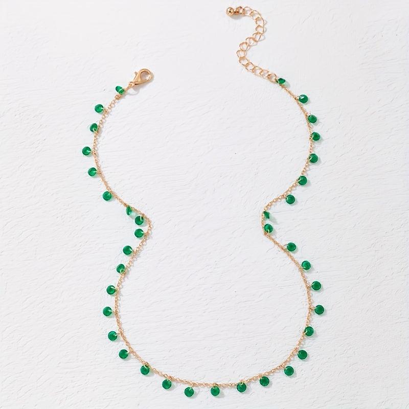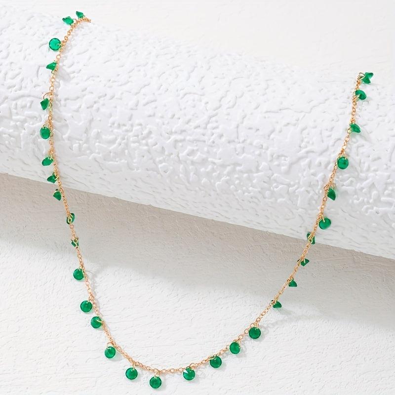 Add a touch of vintage charm with this irregular green pendant necklace. Perfect for St. Patrick's Day celebrations.