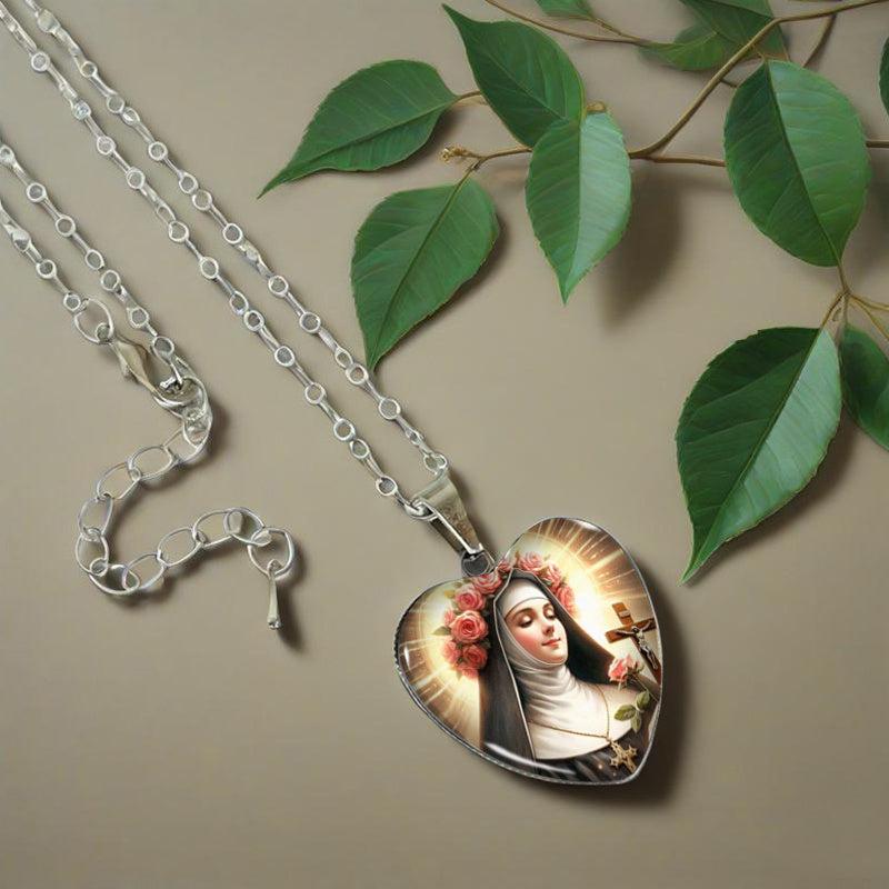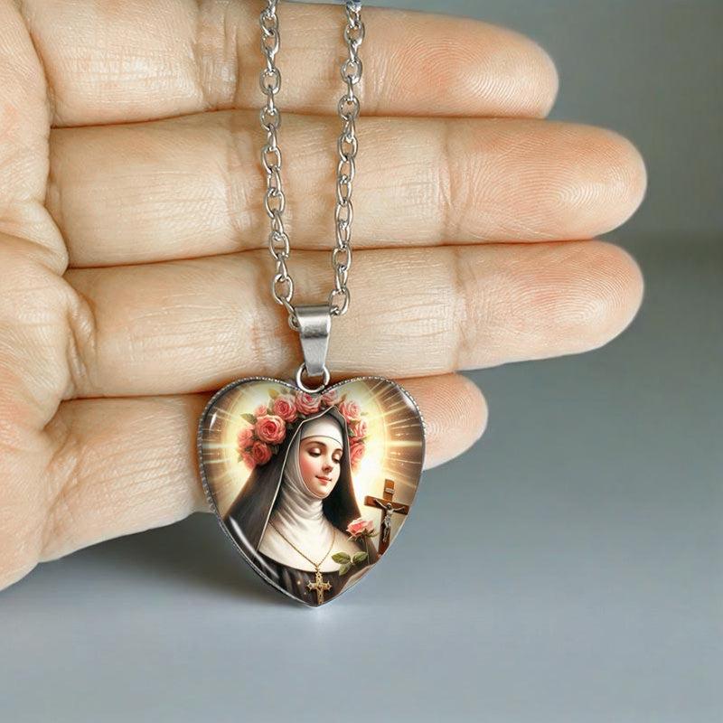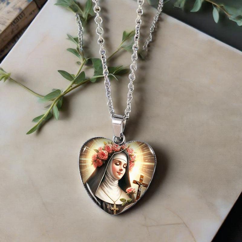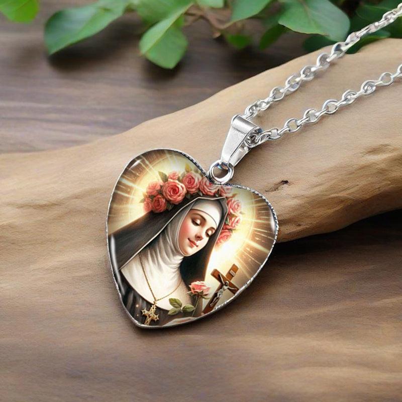 This St Rosary heart shaped necklace features a beautiful glass pendant, making it a perfect accessory for men's jewelry.