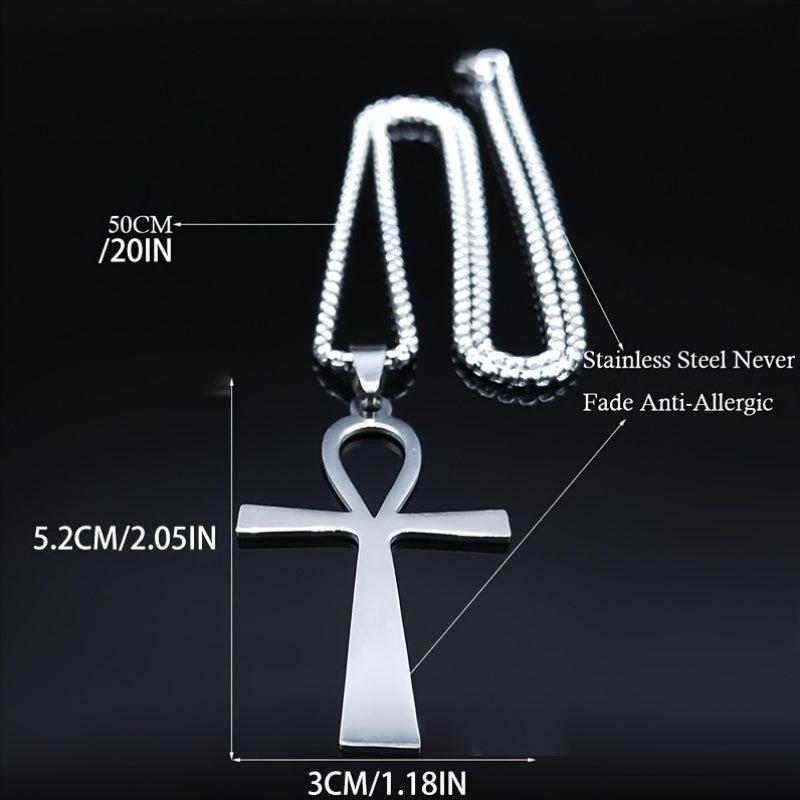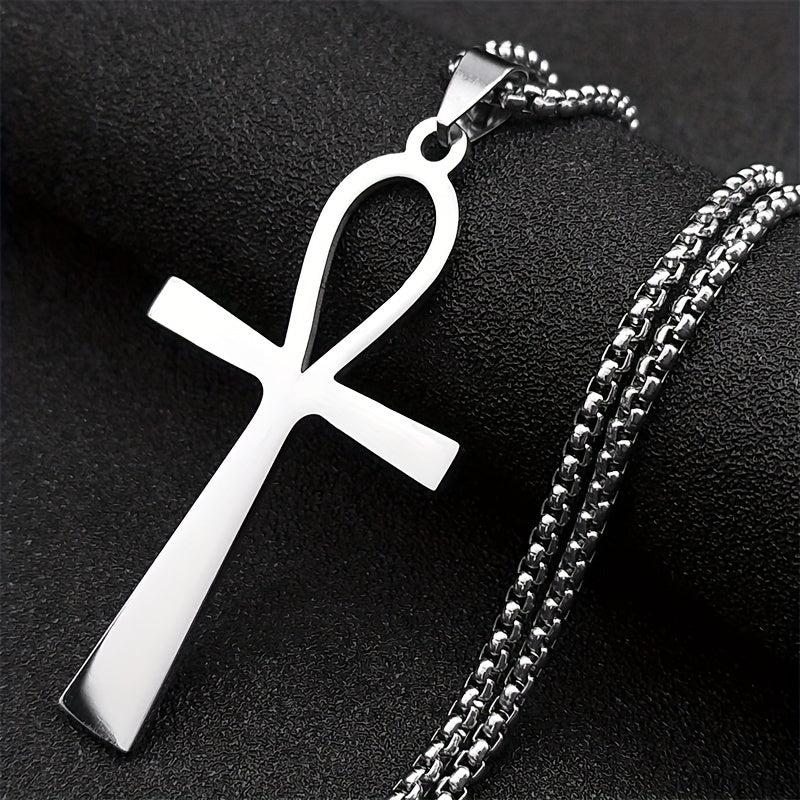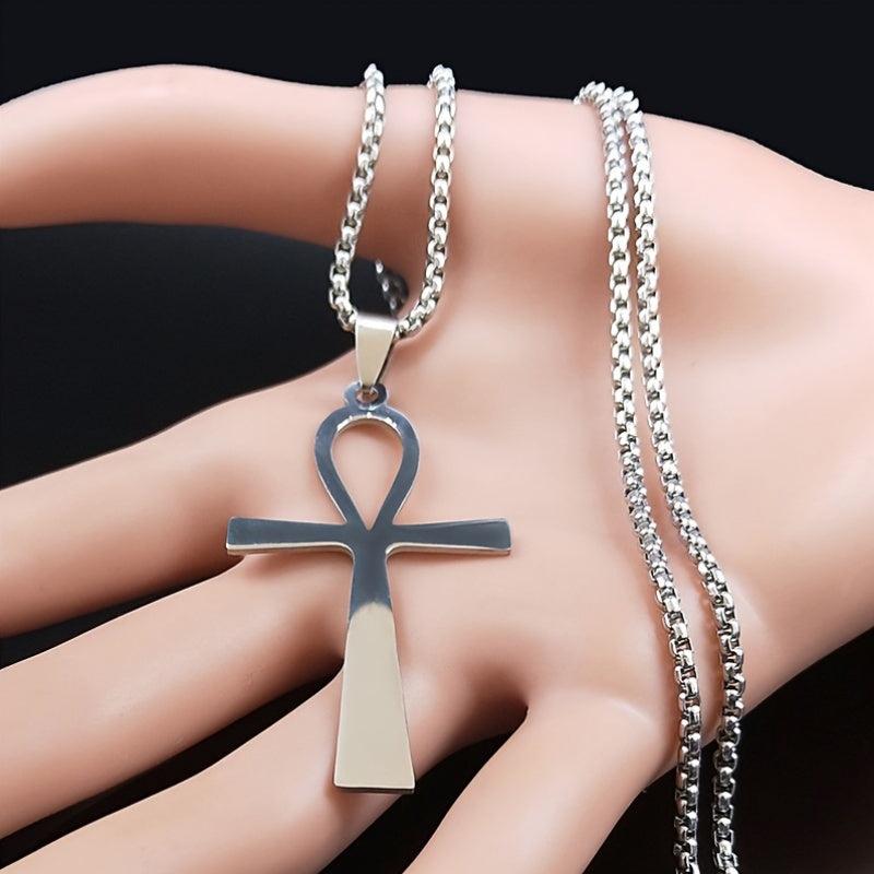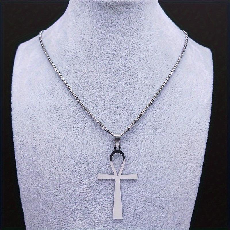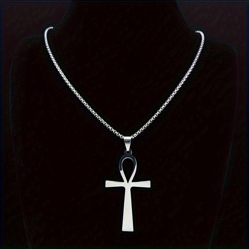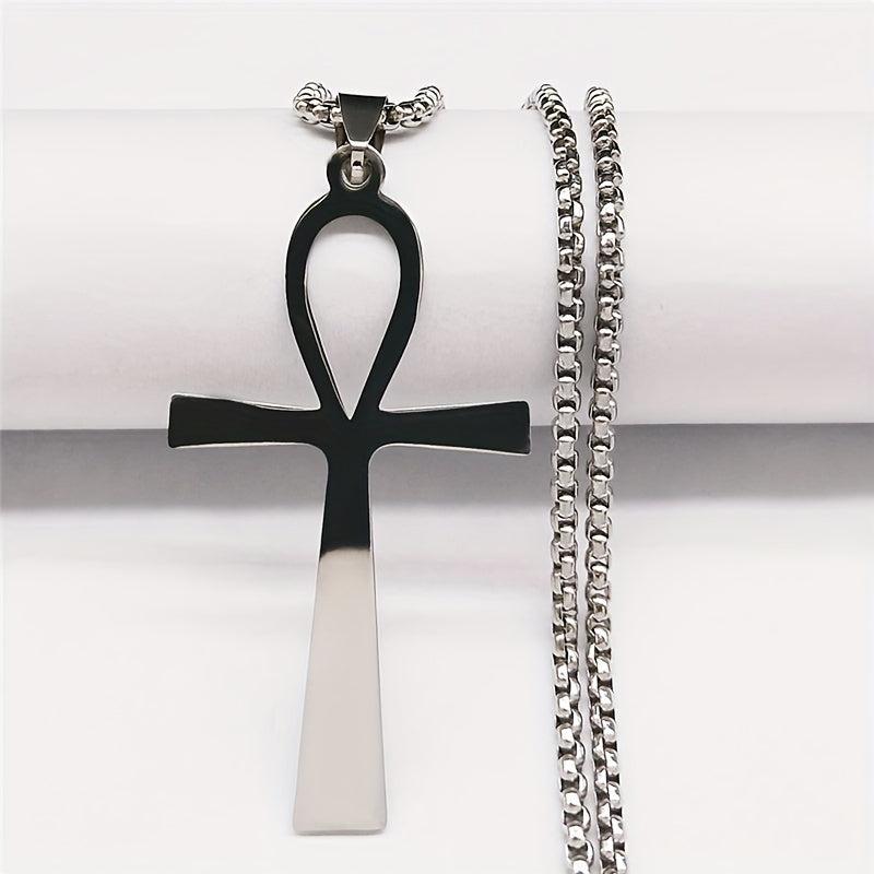 This stainless steel pendant necklace features the Ankh Cross, a symbol of life, suitable for both women and men.