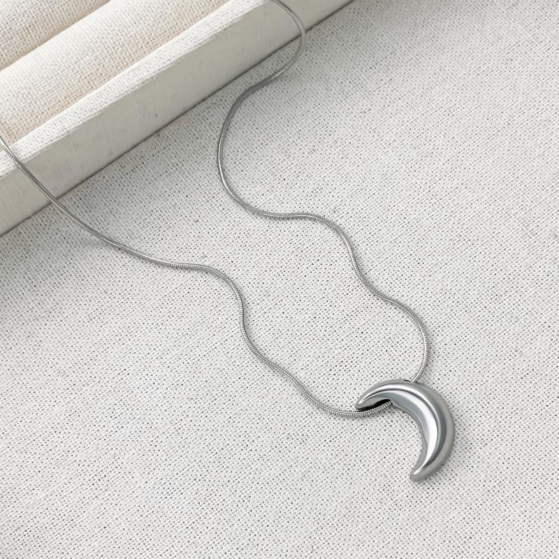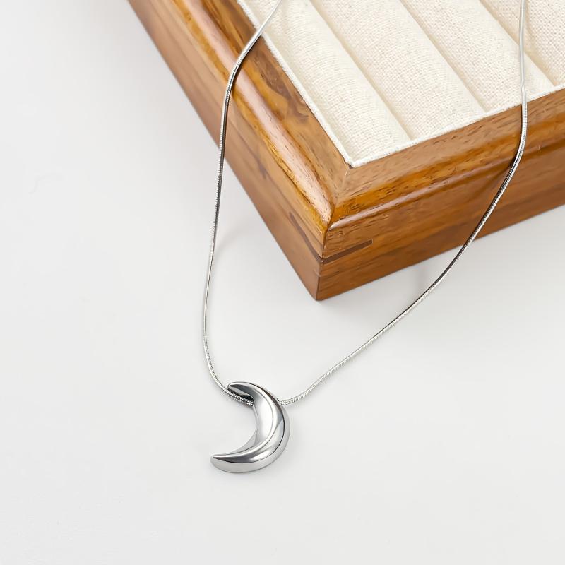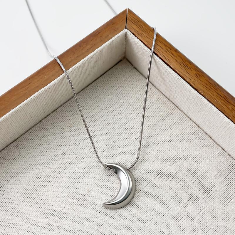 Add a touch of elegance with this stainless steel crescent moon pendant necklace. Perfect for casual attire or parties, making it an ideal cold weather gift.