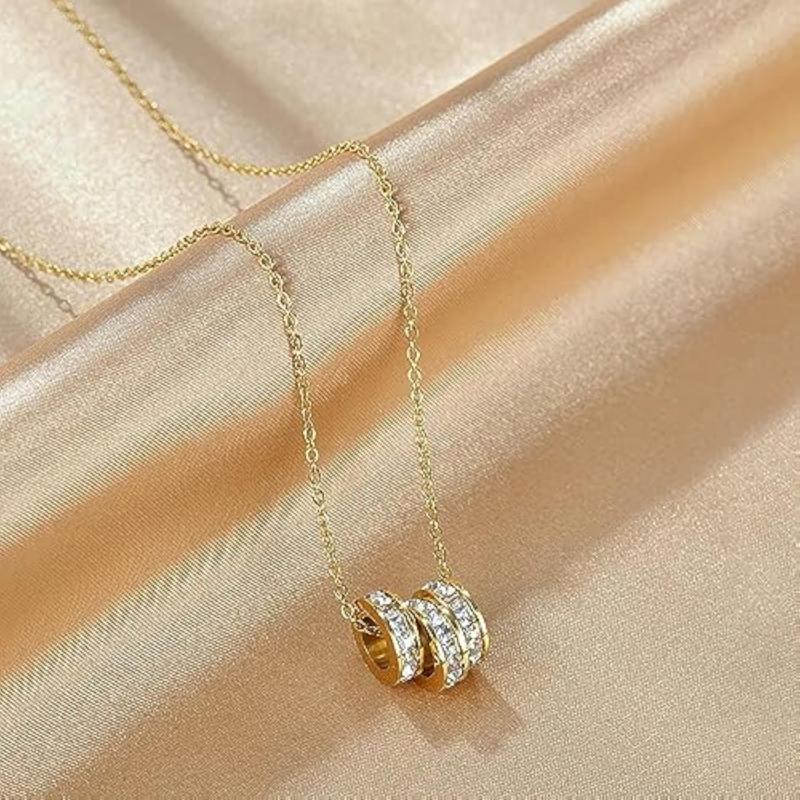 This plated stainless steel pendant features an anti-tarnish finish and cubic zirconia stones. It has 3 loops for versatile use.