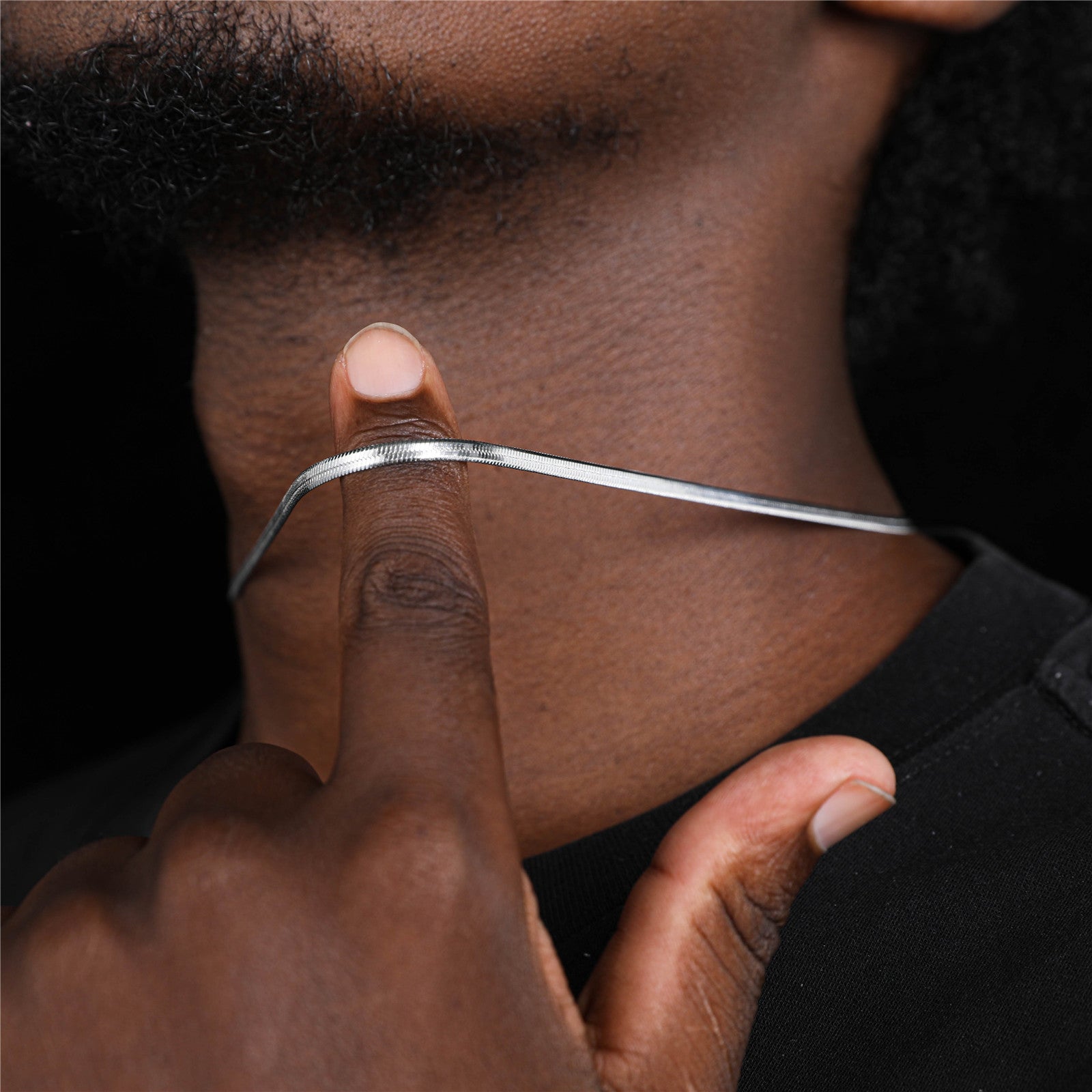 Add a touch of edgy style to your look with this stainless steel flat bone snake necklace.