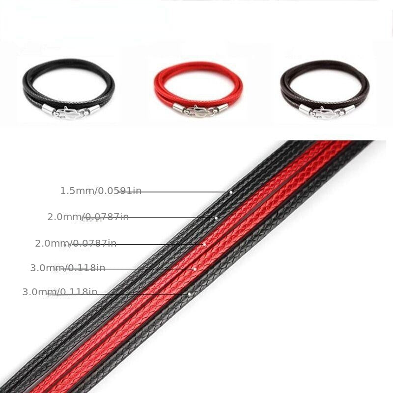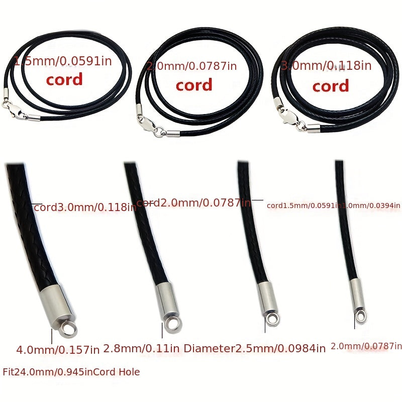 This leather cord necklace chain features a stainless steel lobster clasp connector and comes in round waxed rope. Ideal for men and women.