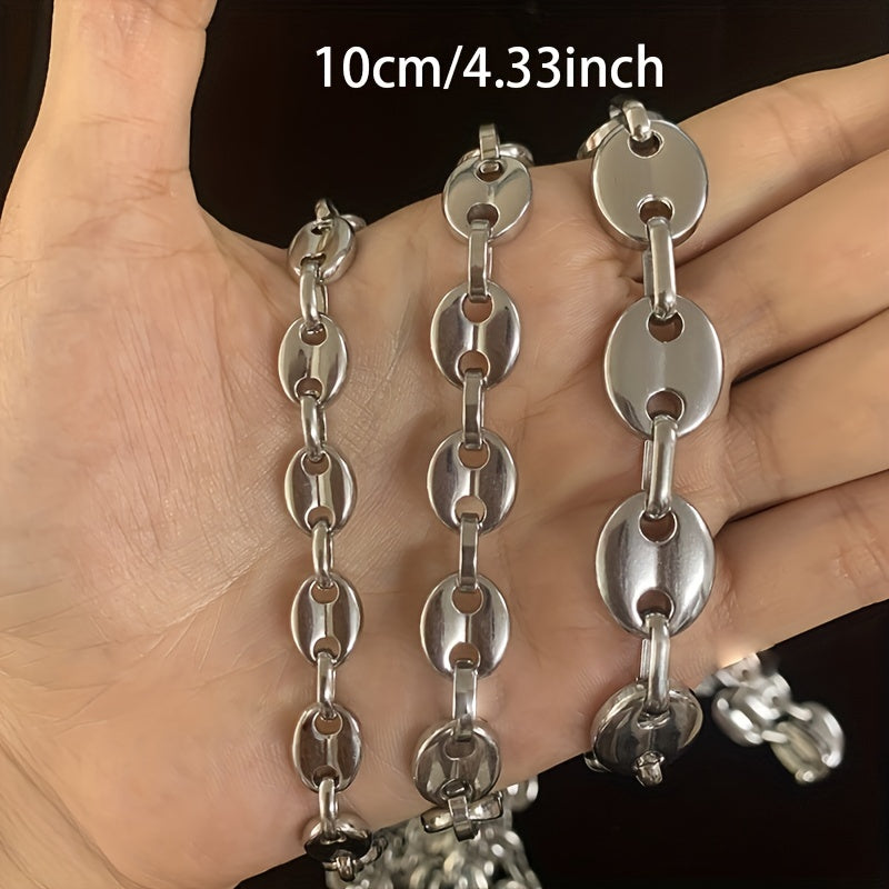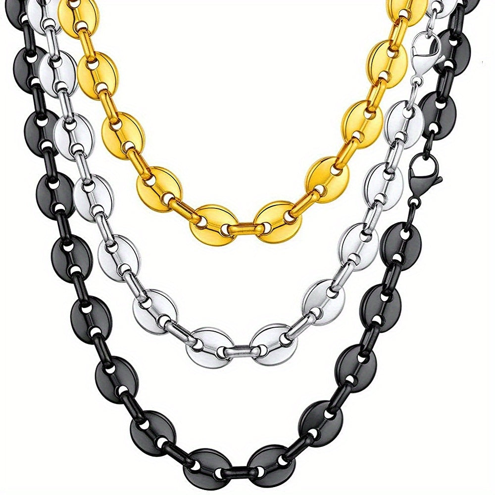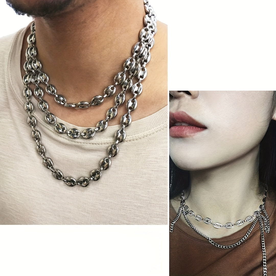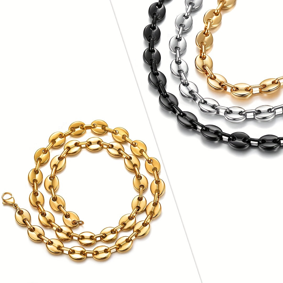 This fashionable necklace features a unique coffee bean chain design that is perfect for both men and women. Made of high-quality stainless steel, it is durable and stylish.