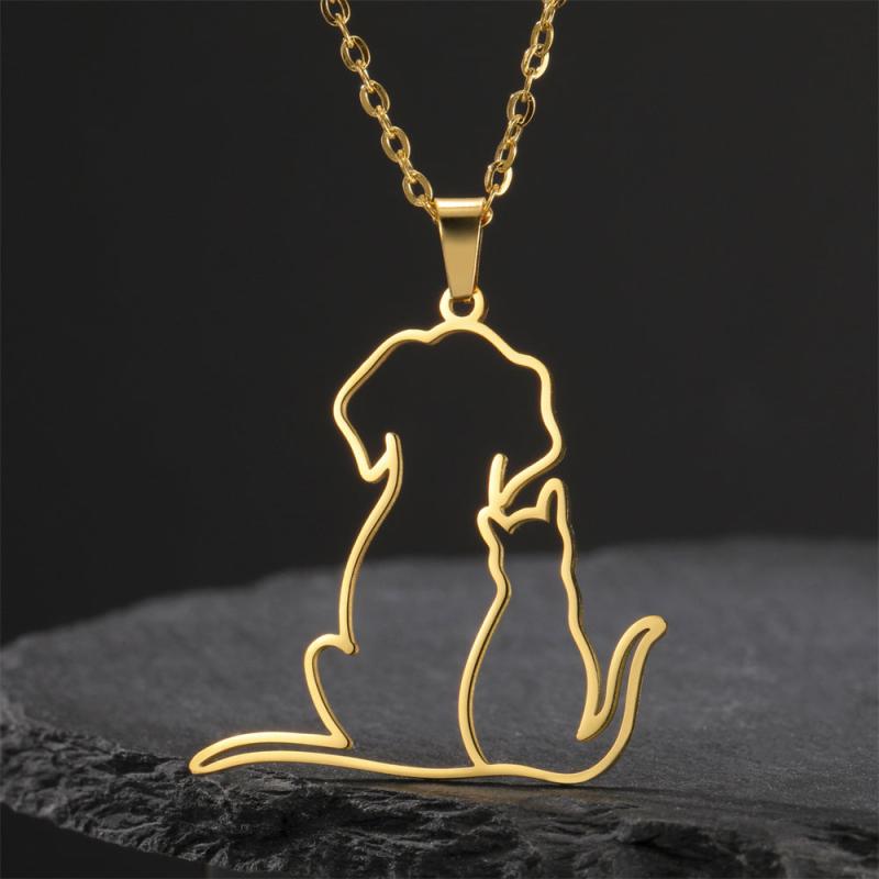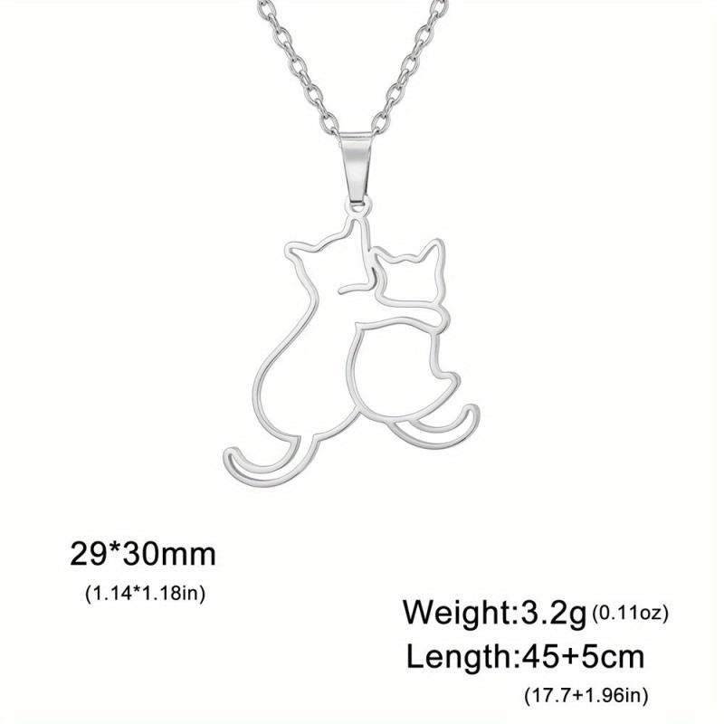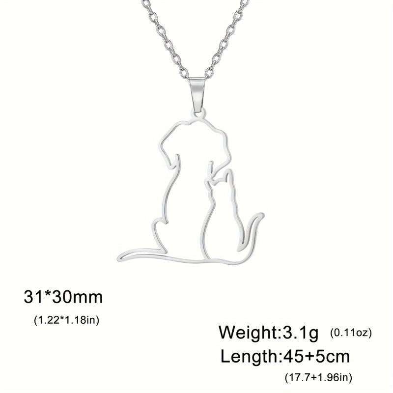 Show your love for your furry friends with this stainless steel necklace featuring adorable puppies and kittens cuddling. Makes a perfect gift for any pet lover.