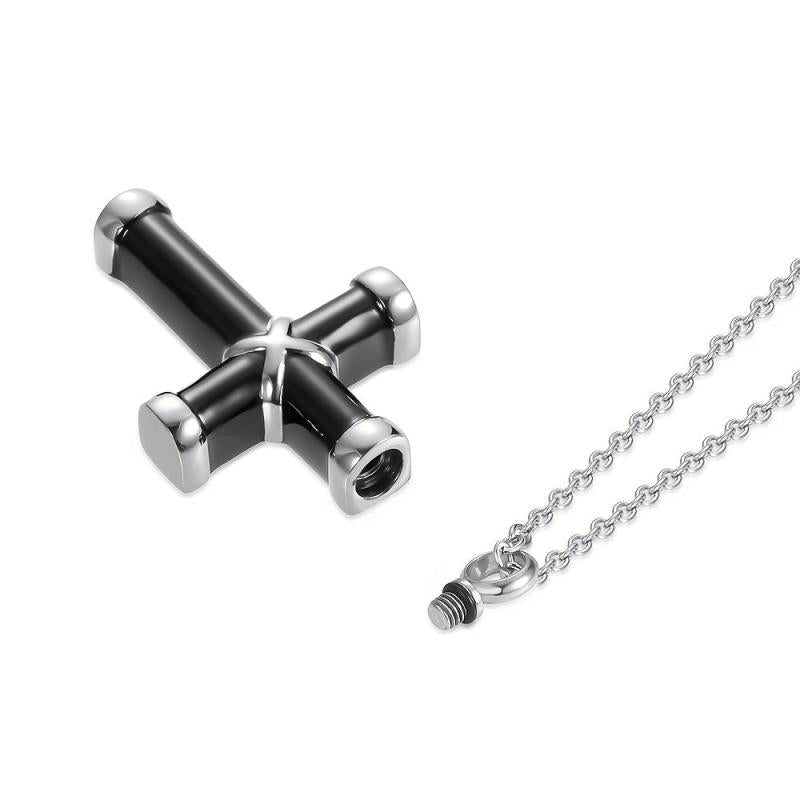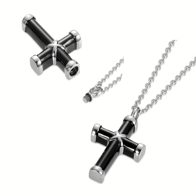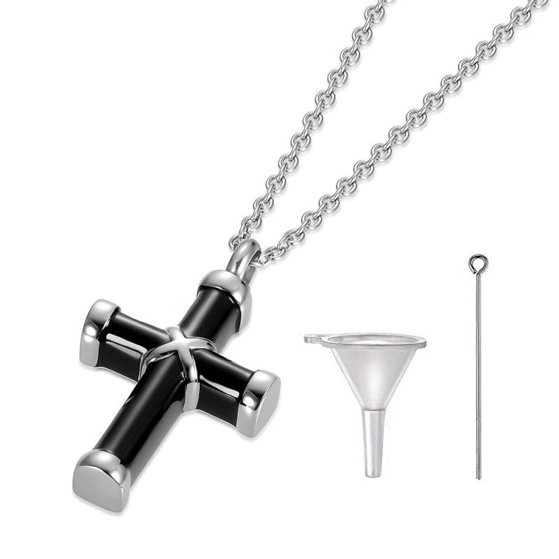This stainless steel urn necklace is a perfect keepsake to hold ashes of your pet. It features a crucifix design and is waterproof. Comes with a filling kit for easy use.