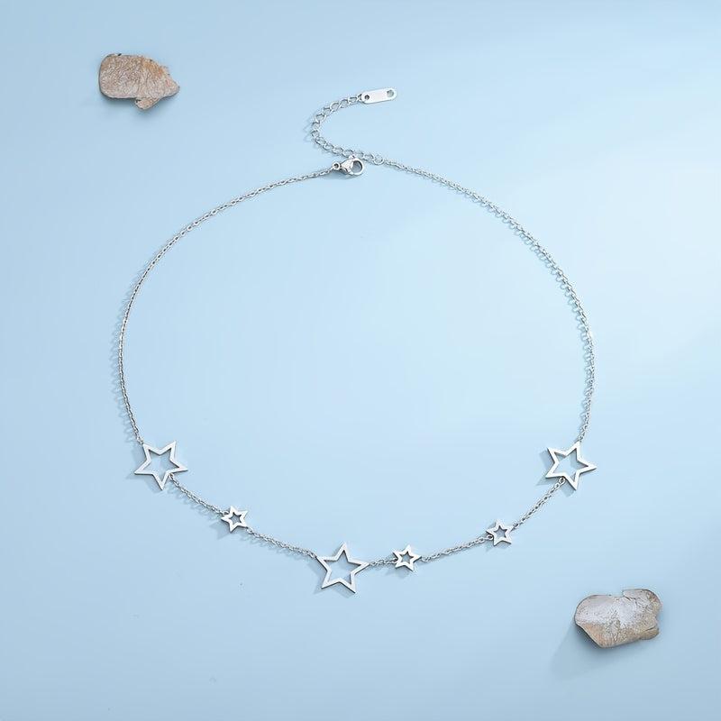 Add a touch of elegance to your attire with this stainless steel star necklace featuring a triple star pendant and delicate chain. Perfect for daily wear, parties, music festivals, and Holi celebrations.