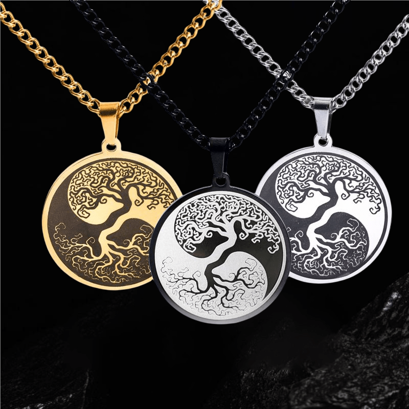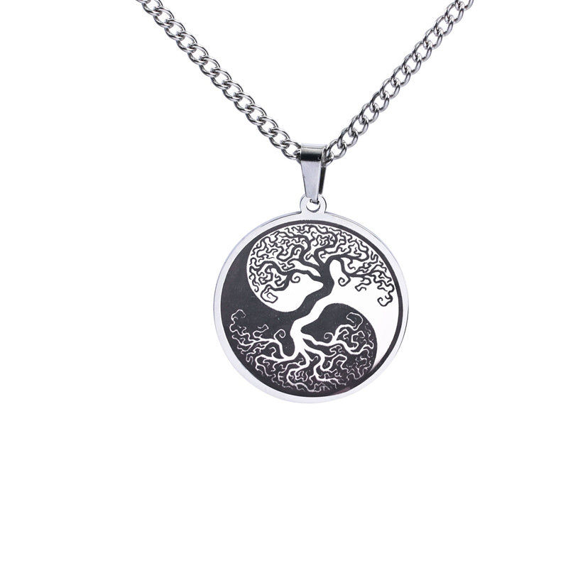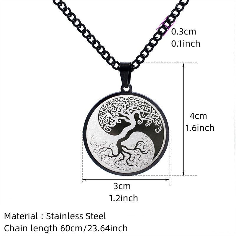 This hip hop necklace features a round pendant with Yin Yang design. Made from durable titanium steel, it's a stylish addition to your outfits.