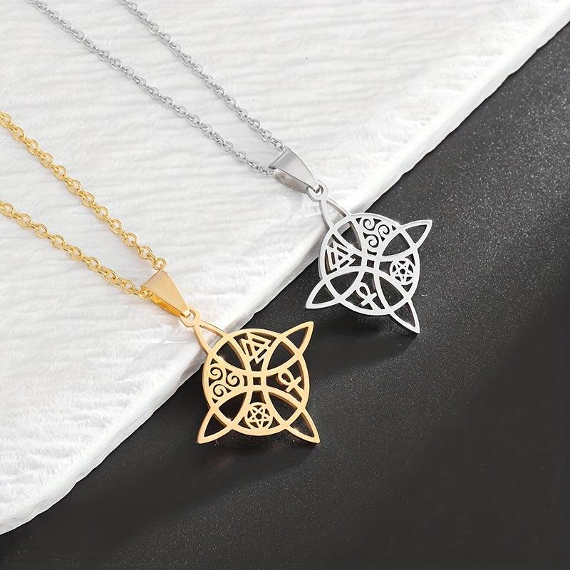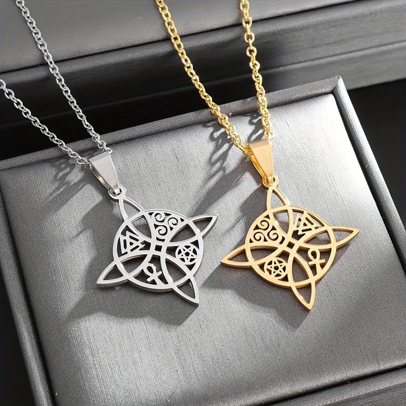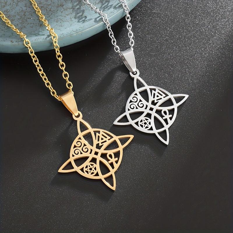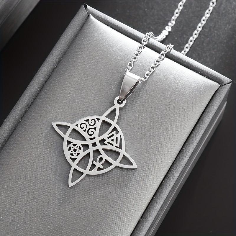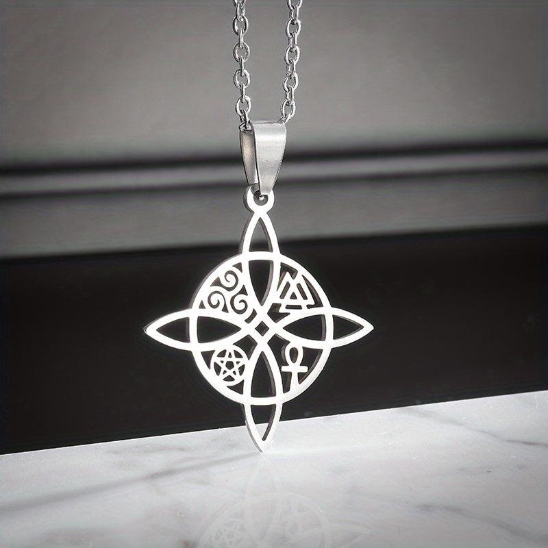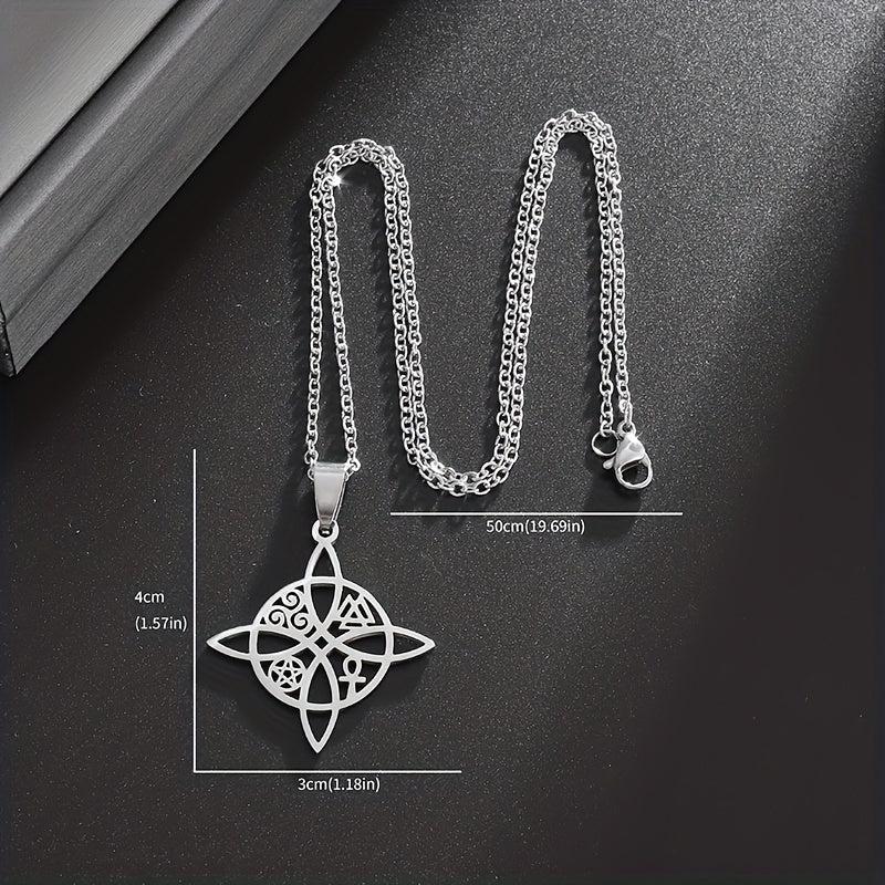 This necklace features a witch's knot pendant symbolizing protection and warding off negative energies. Made of high-quality stainless steel, this piece is perfect for both men and women. Ideal for anniversaries or as a lucky charm gift.