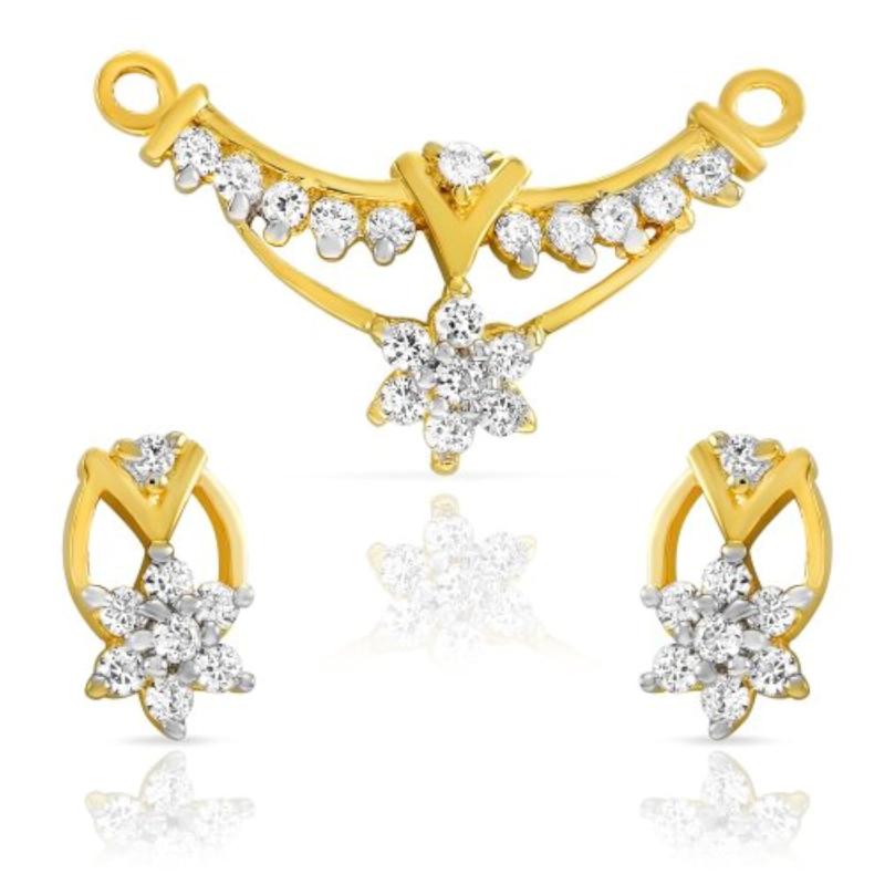 Elegant plated mangalsutra set featuring a magnificent star design with CZ stones. This set is made of high-quality brass alloy, making it a perfect accessory for special occasions.