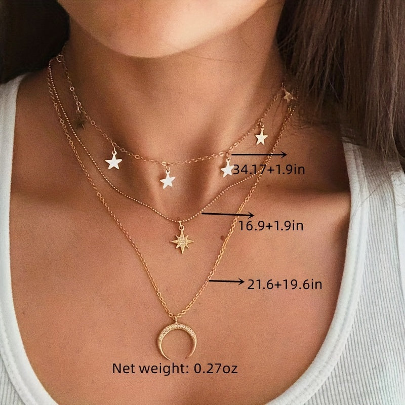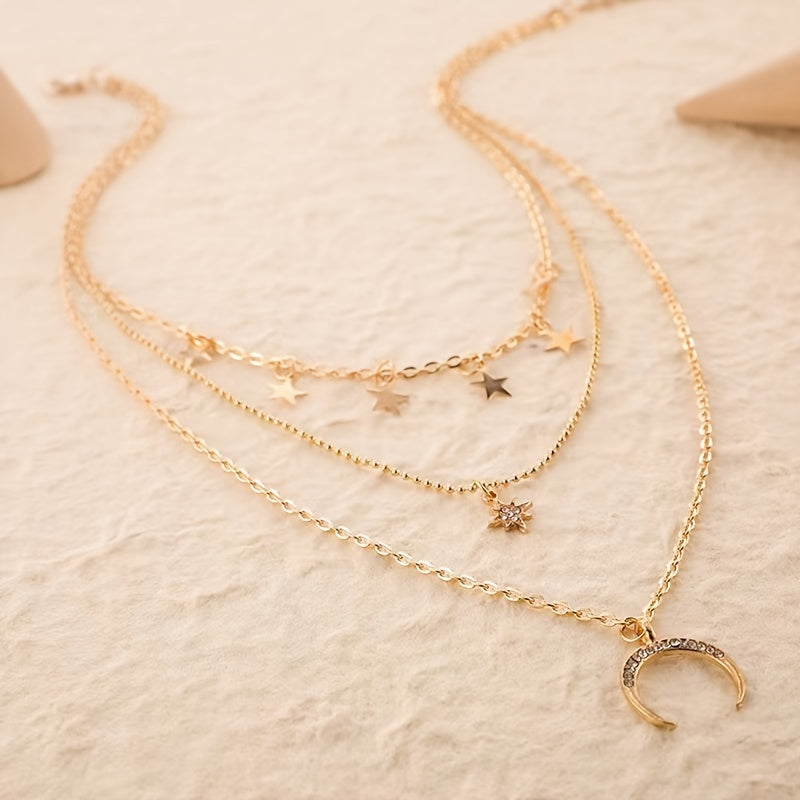 Elegant and stylish women's necklace featuring a creative star moon pendant design. Perfect for adding a touch of celestial charm to your outfit.