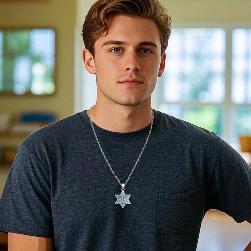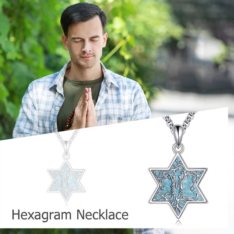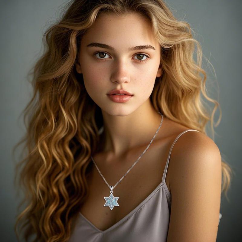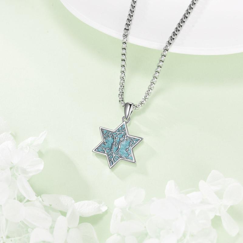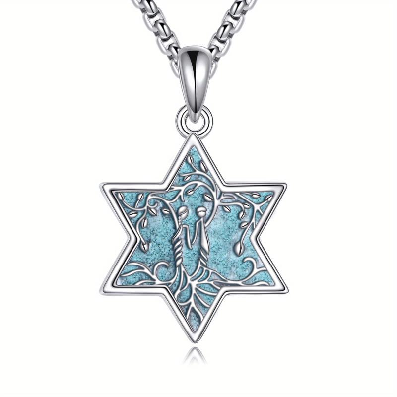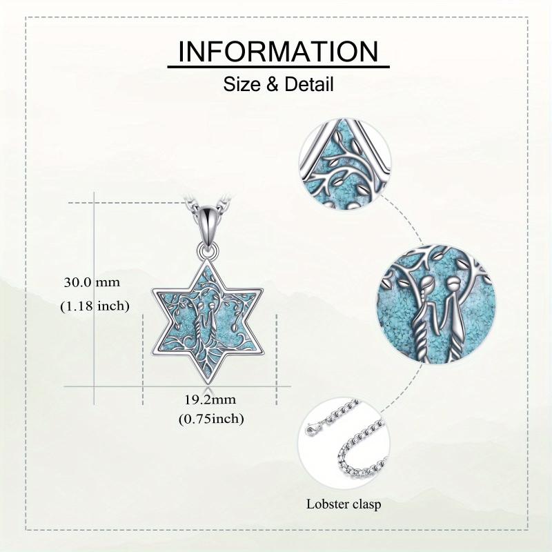 Beautiful Star of David necklace crafted from 925 sterling silver with synthetic turquoise and Tree of Life design. This pendant necklace is a stunning piece of jewellery for women.