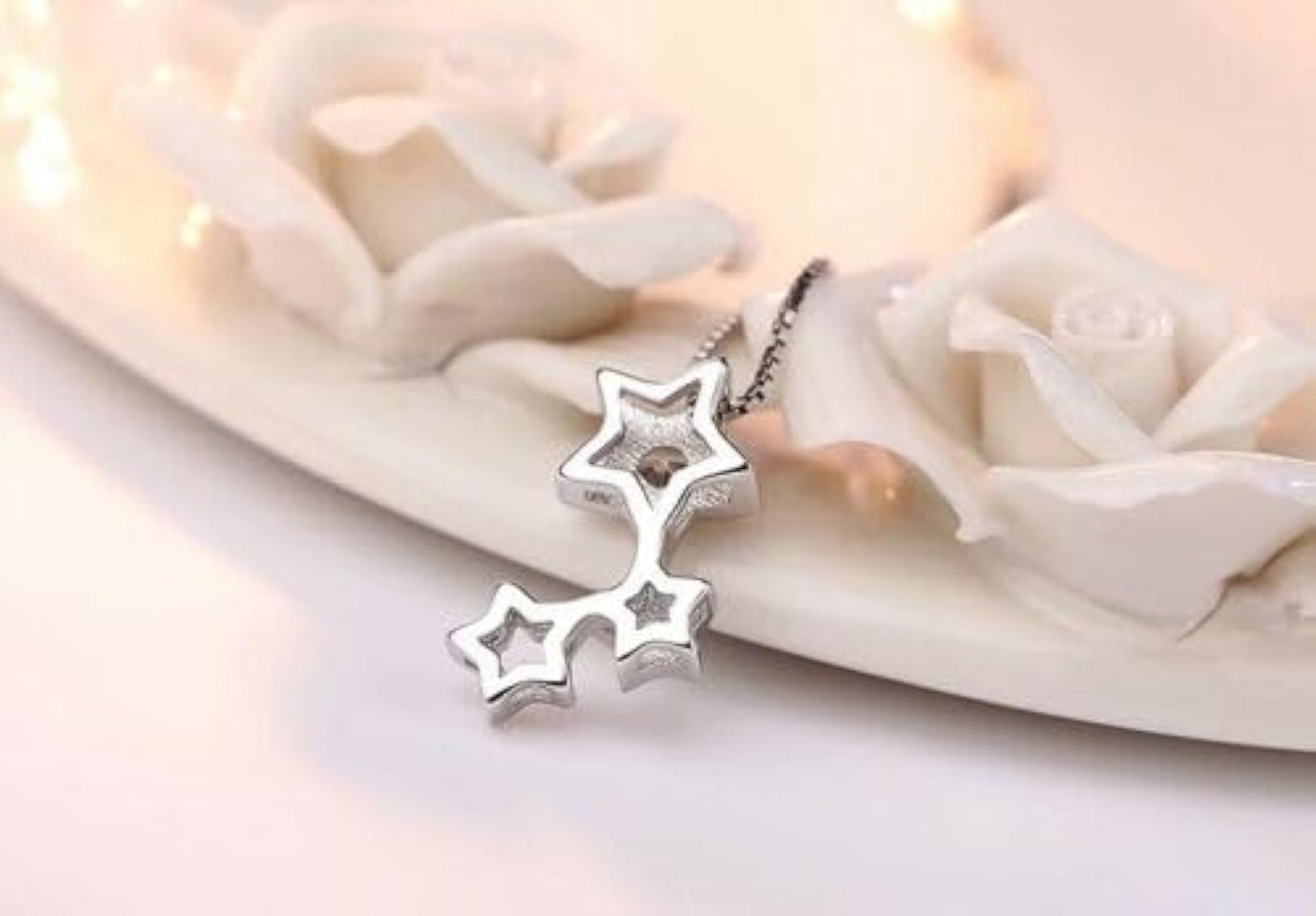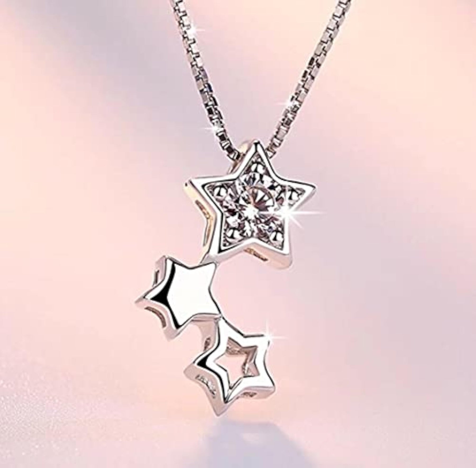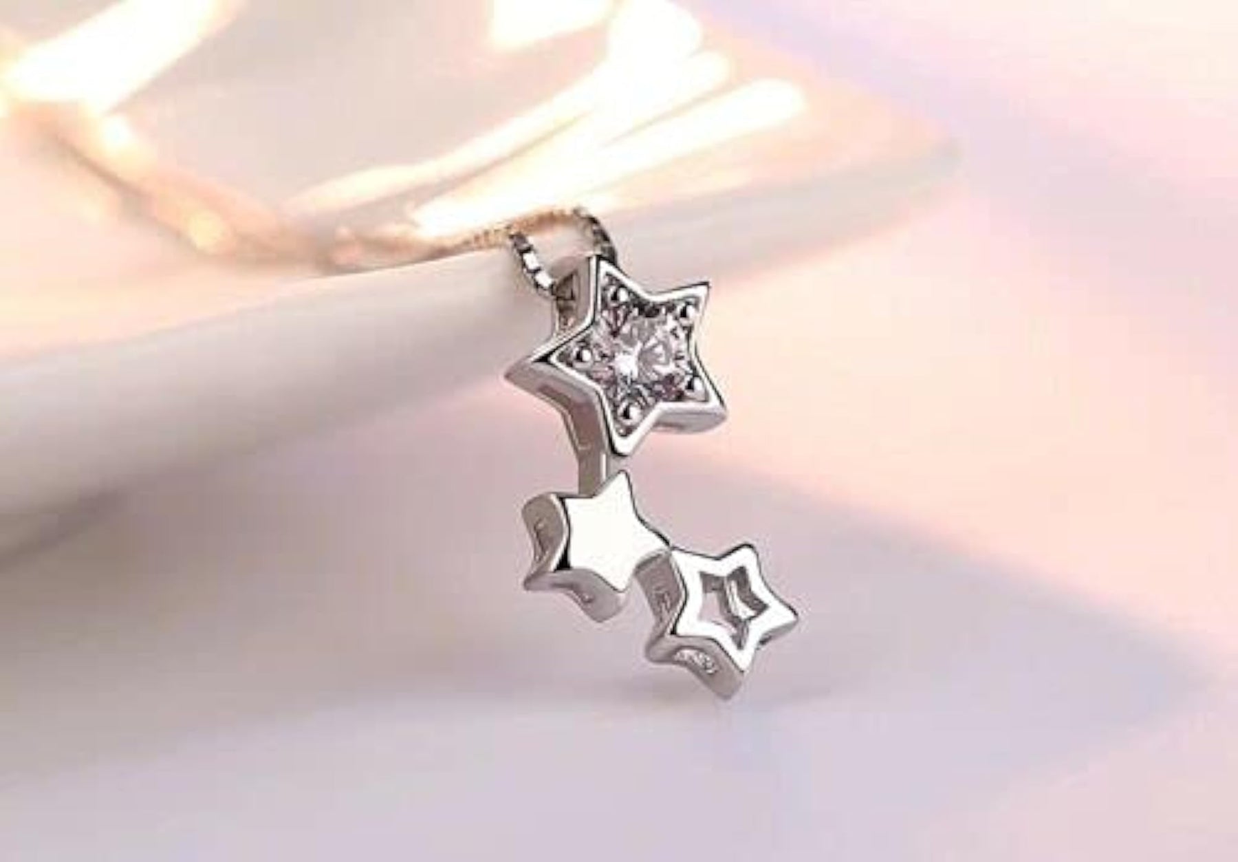 This elegant necklace features a plated star pendant with shimmering cubic zirconia. It comes with a delicate chain, perfect for adding a touch of shine to any outfit.