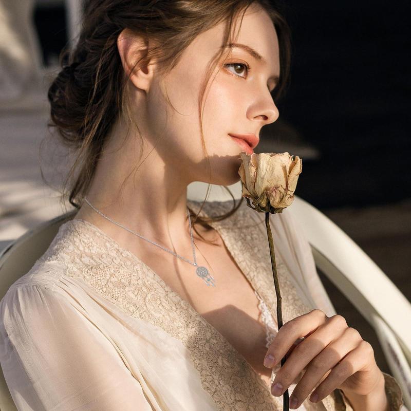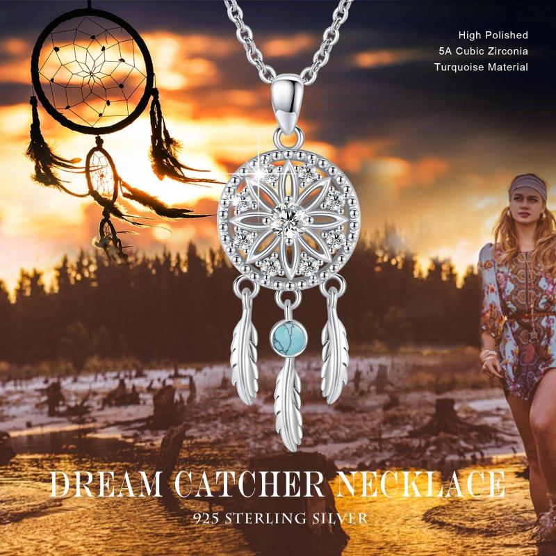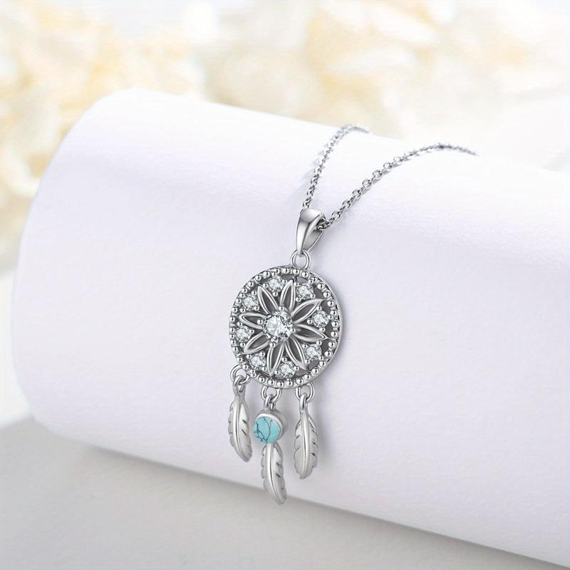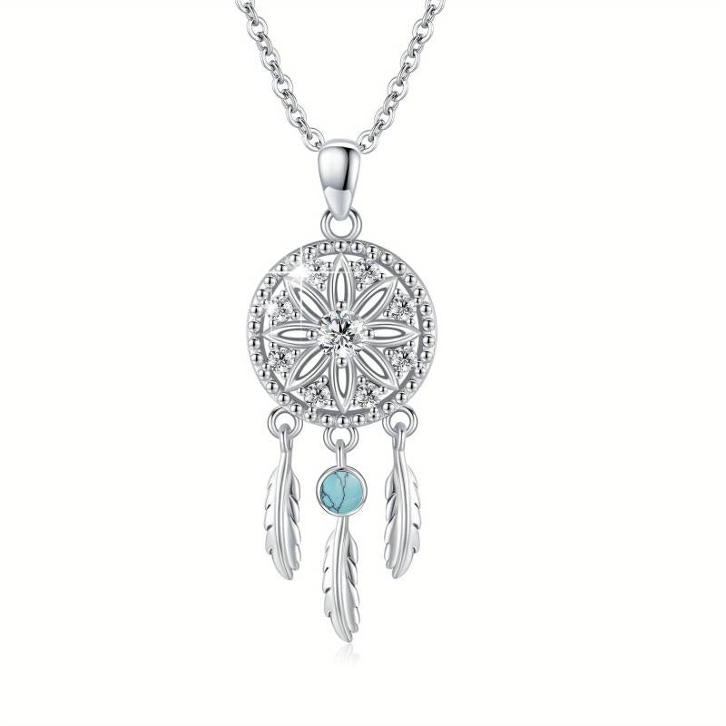 This exquisite necklace features a dream catcher pendant with feather details, perfect for a bohemian style. Crafted from sterling silver, this necklace is a symbol of protection and positive energy.