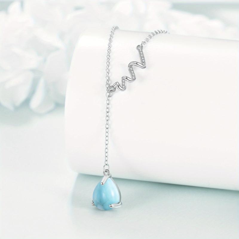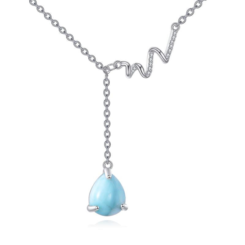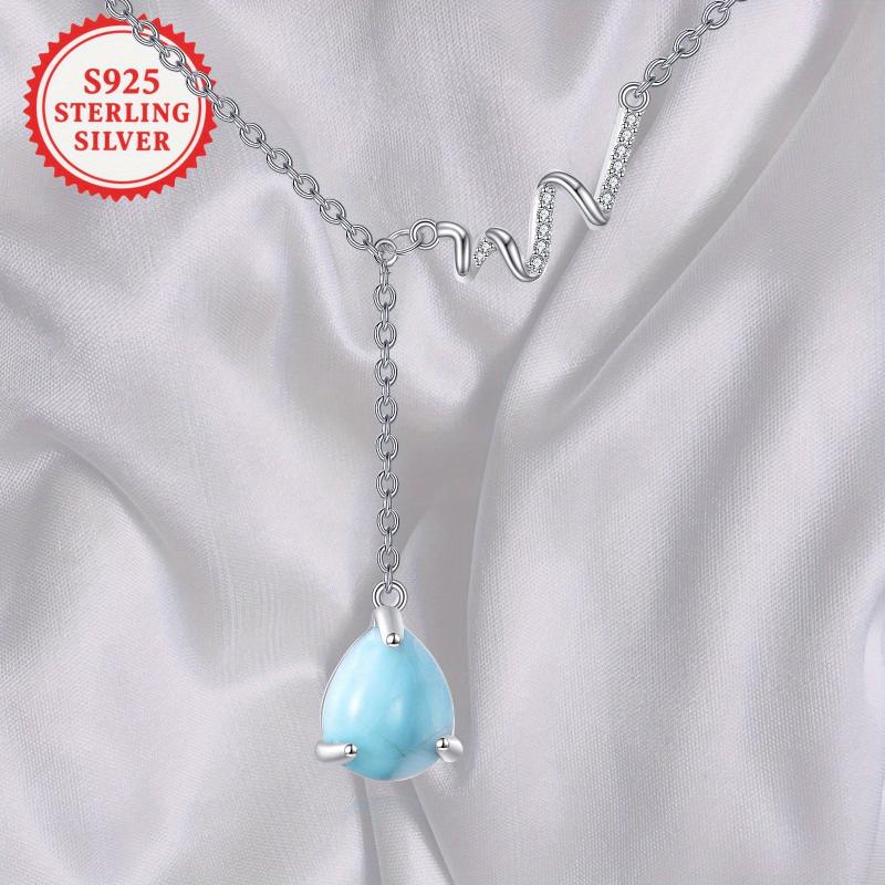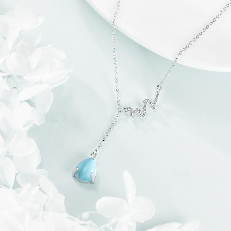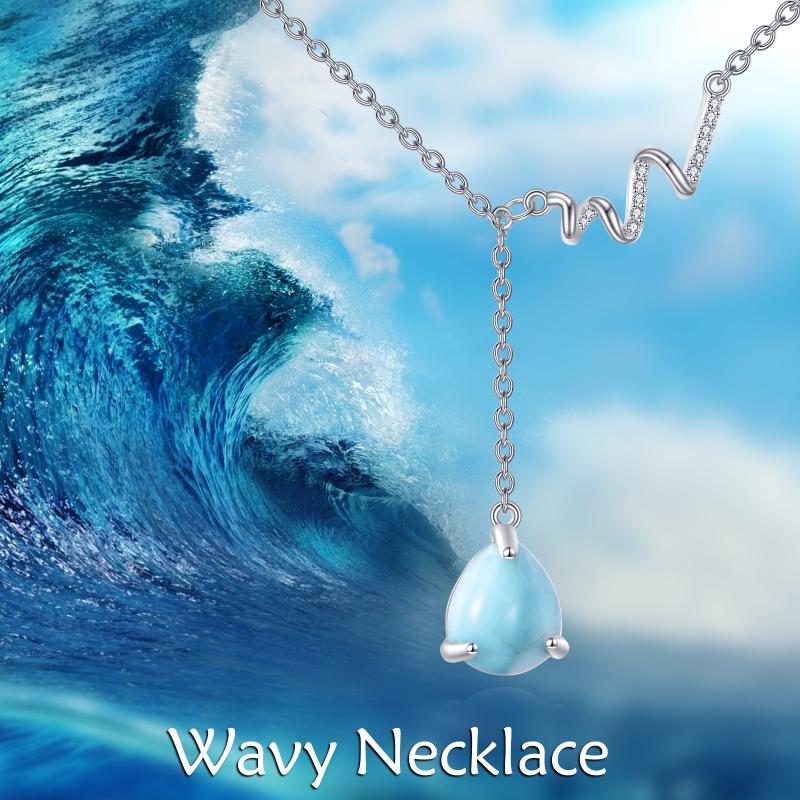 This stunning Larimar necklace features a wave design, perfect for ocean and beach lovers. The Y shape adds elegance and charm to your outfit.