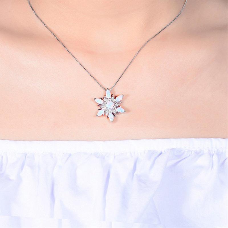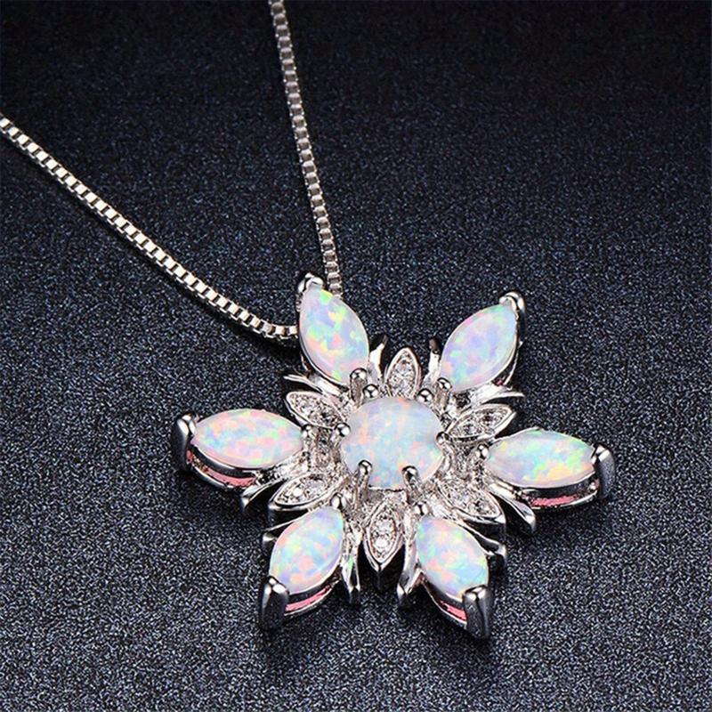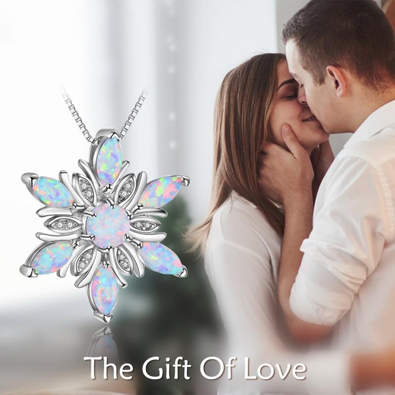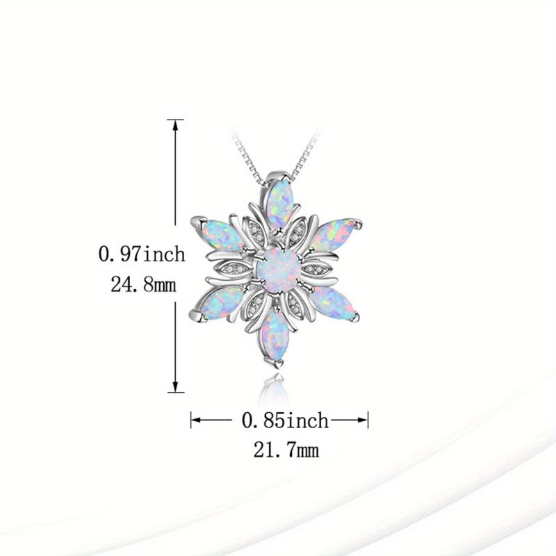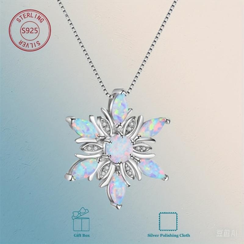 This elegant 925 sterling silver necklace features a synthetic opal snowflake pendant, making it a perfect gift for women, especially moms.