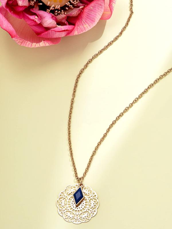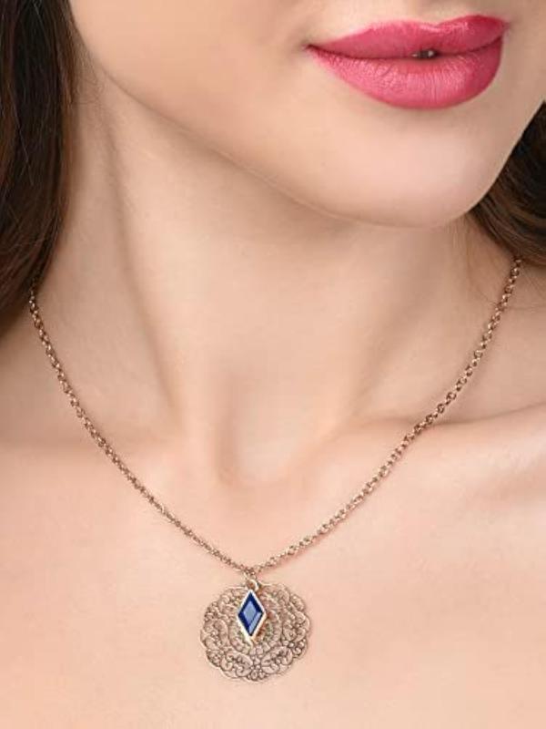 Elevate your style with this contemporary stone pendant and chain. It is a perfect accessory for women.