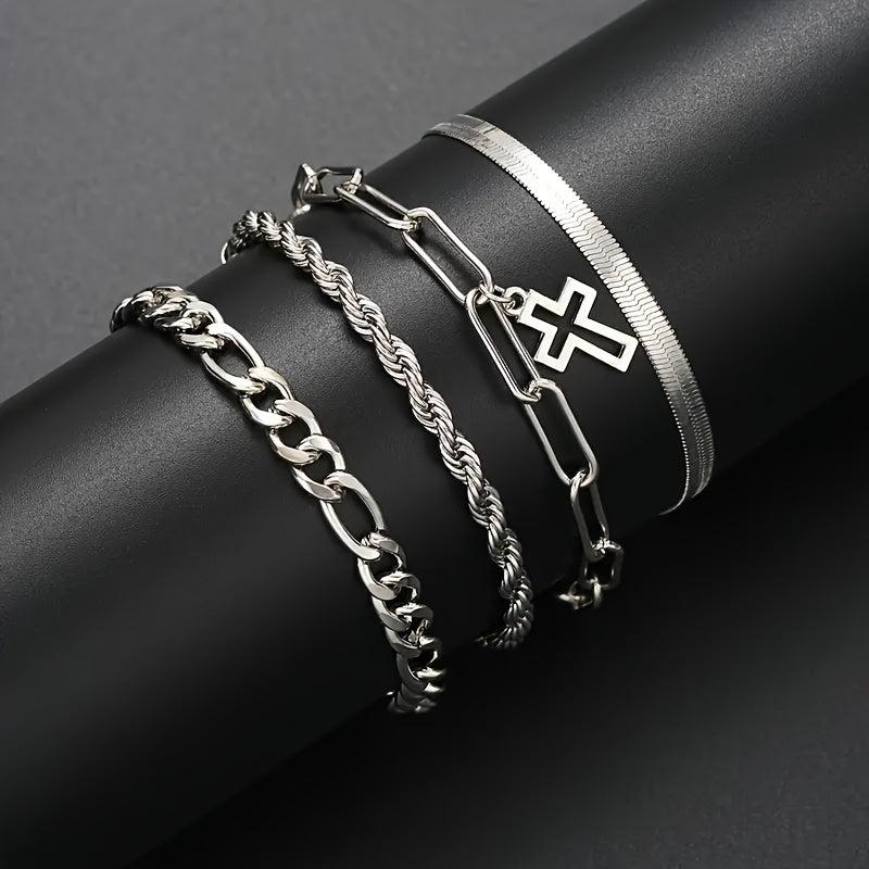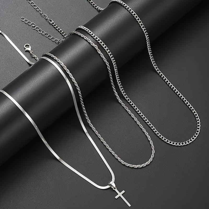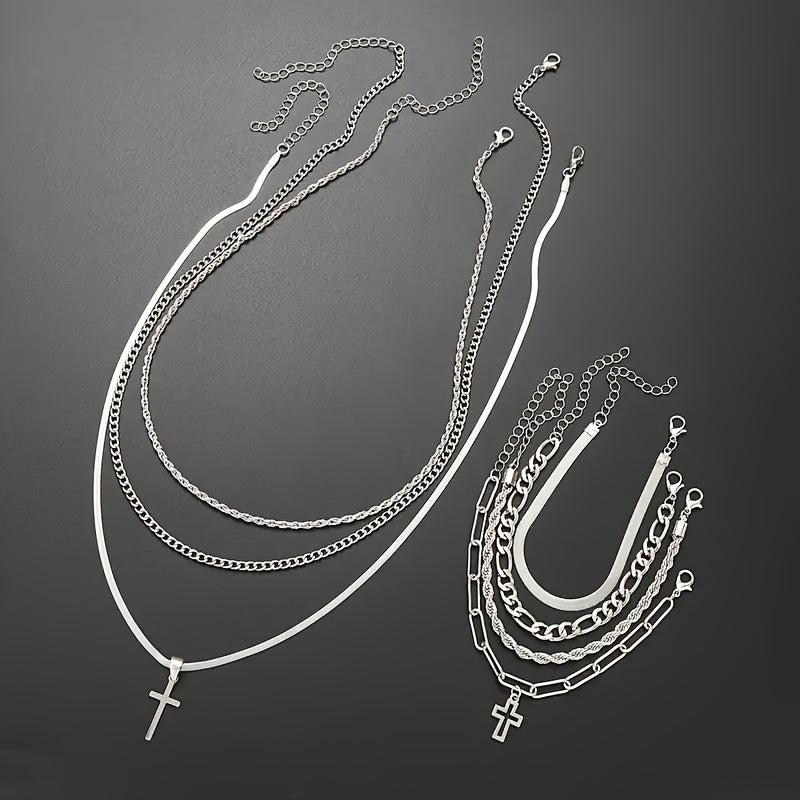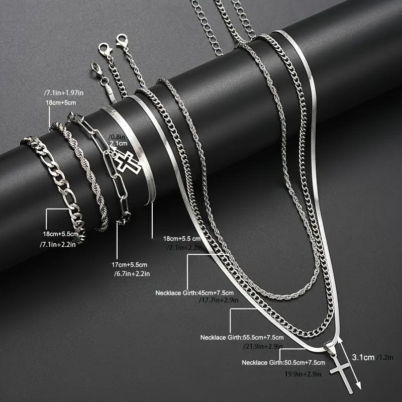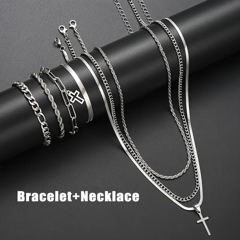 This stainless steel jewelry set features a street style design that is perfect for both men and women. It includes a stylish cross pen that adds a unique touch to your outfit.