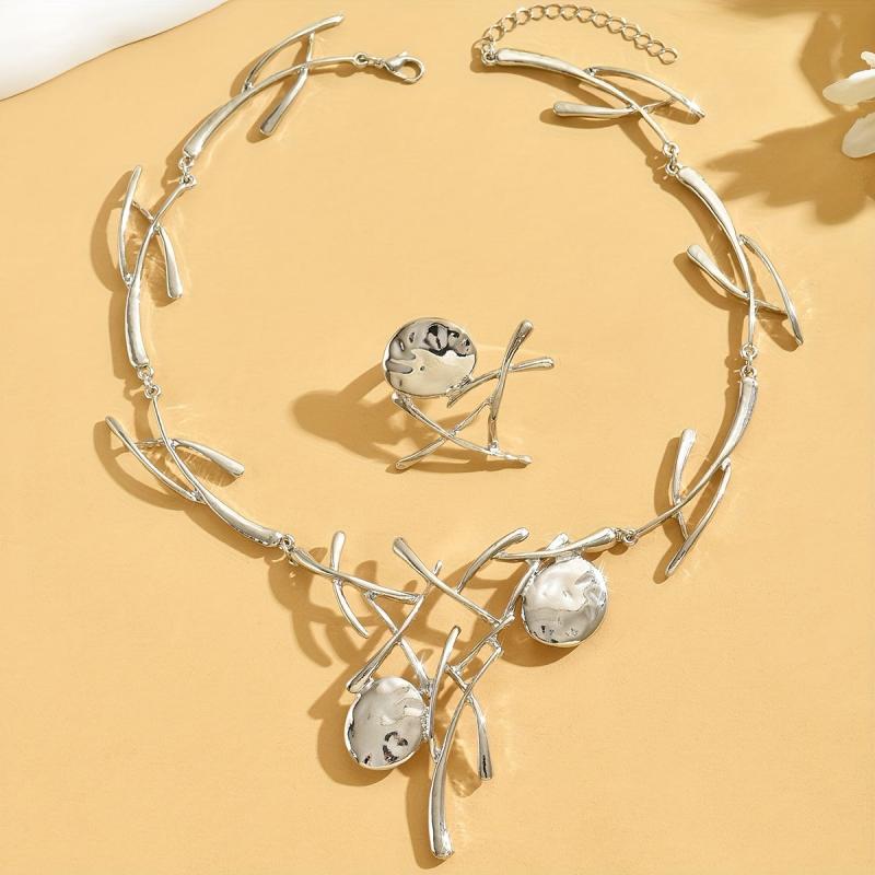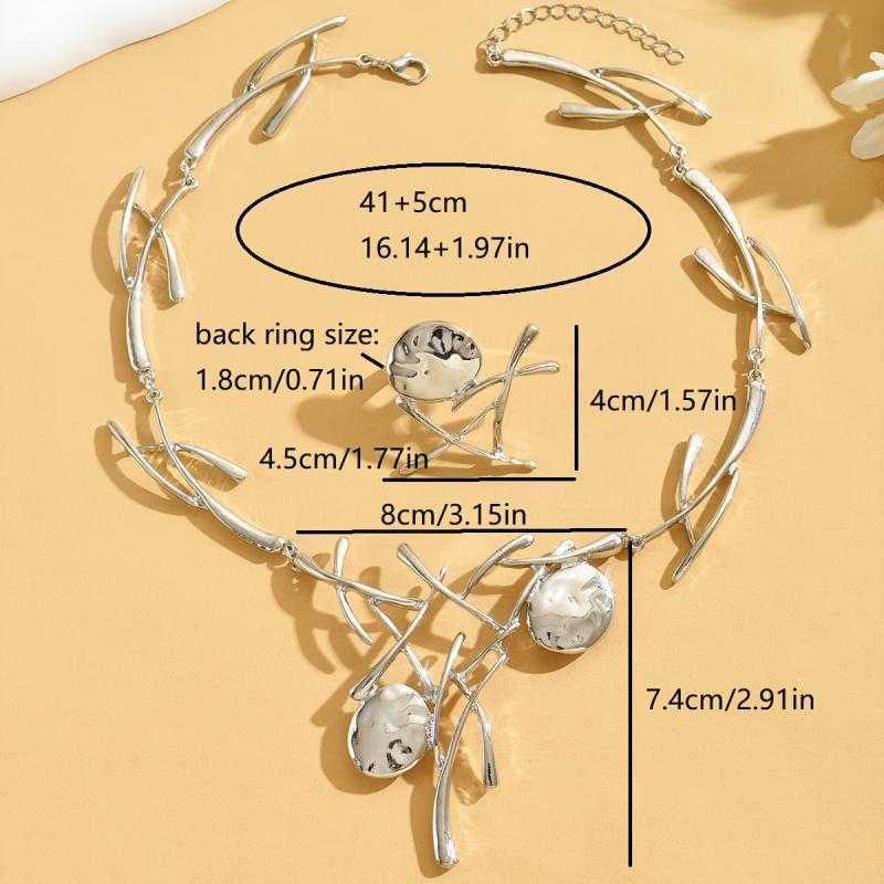 This set features a minimalist irregular forked branch spliced oval pendant necklace and ring, perfect for daily wear or festive occasions. Add a touch of elegance to your outfit with this fashionable set.
