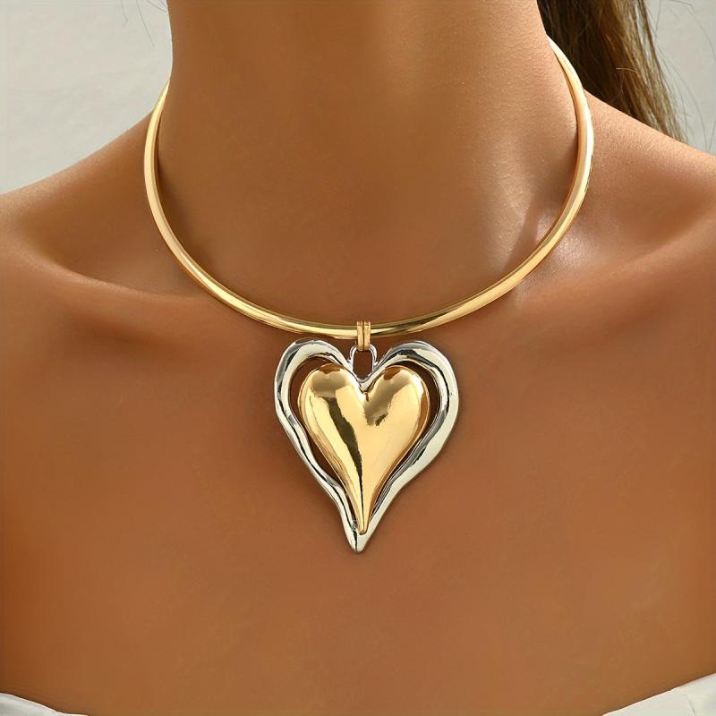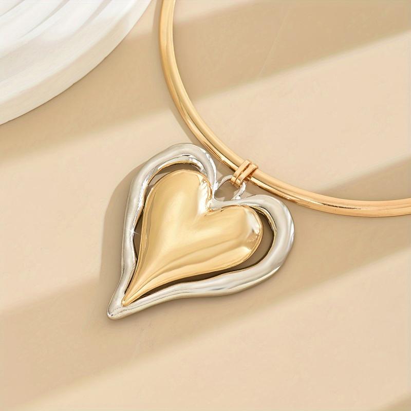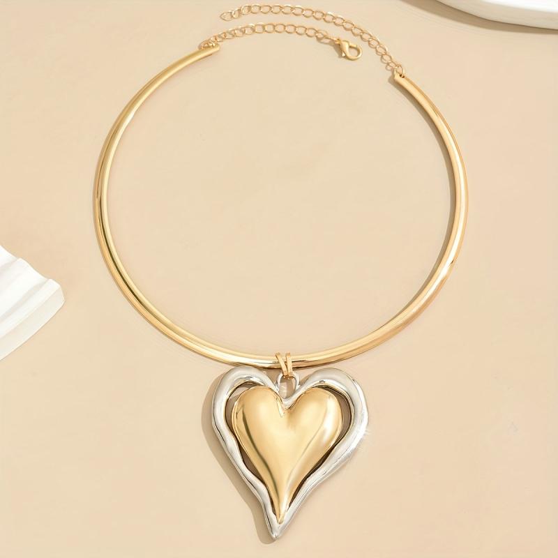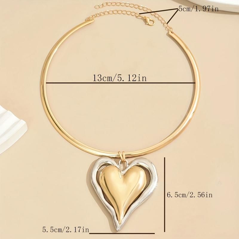 Elevate your party look with this glossy heart pendant collar necklace. A two-tone heart pendant adds a touch of sophistication to your daily ensembles.