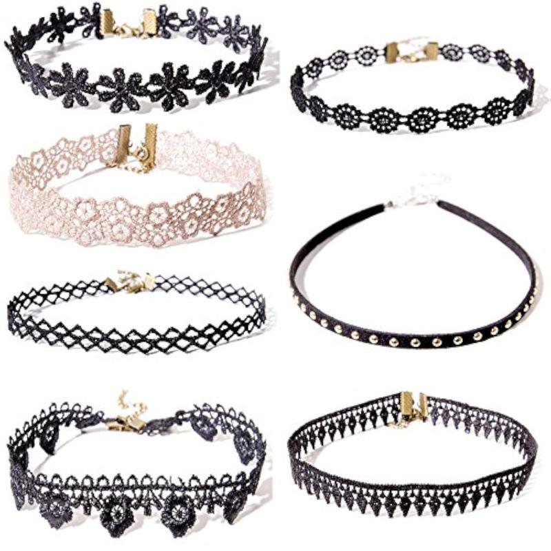 This 7-piece combo choker necklace set features elegant lace design for a fashionable look. Suitable for women and girls.