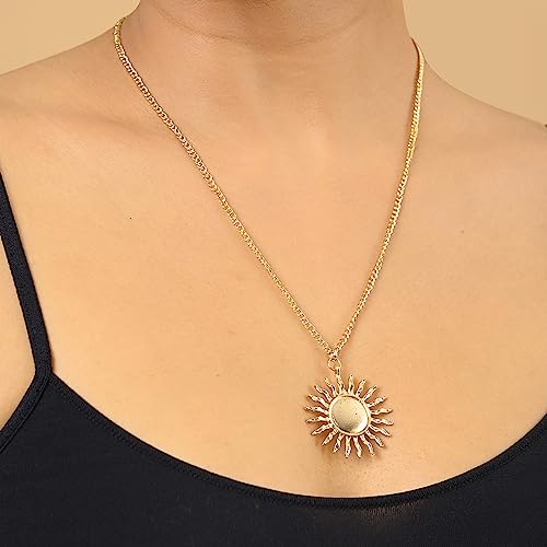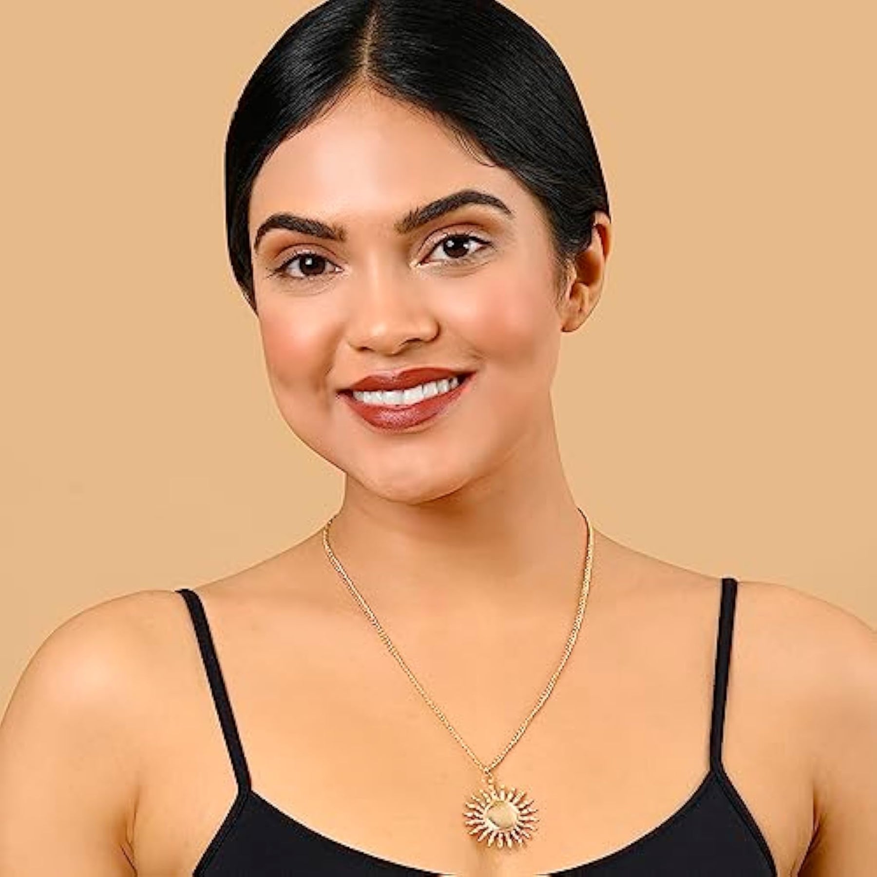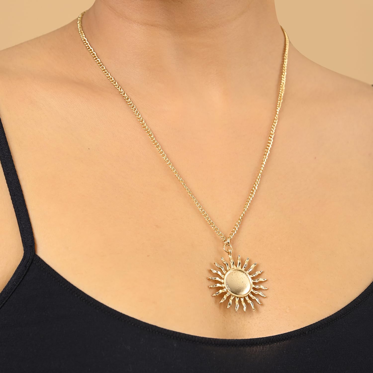 This necklace features a large sun pendant plated for a stylish look. It is light weight and anti tarnish, making it a durable and trendy accessory.