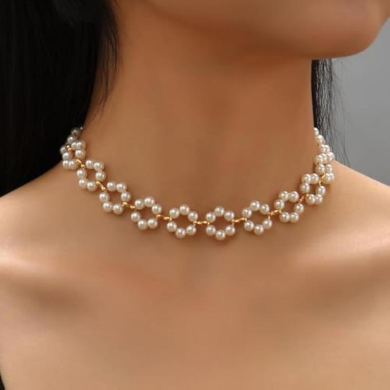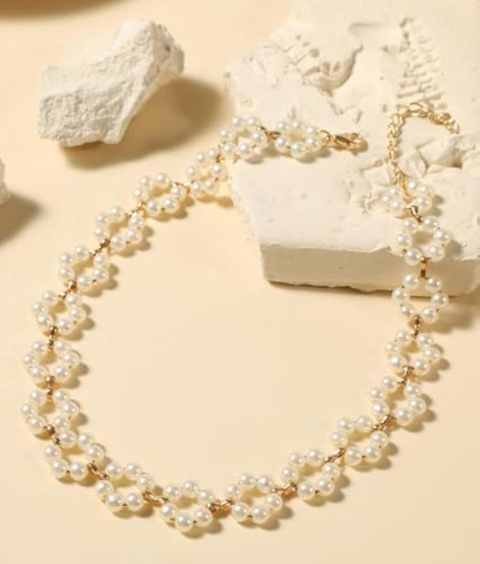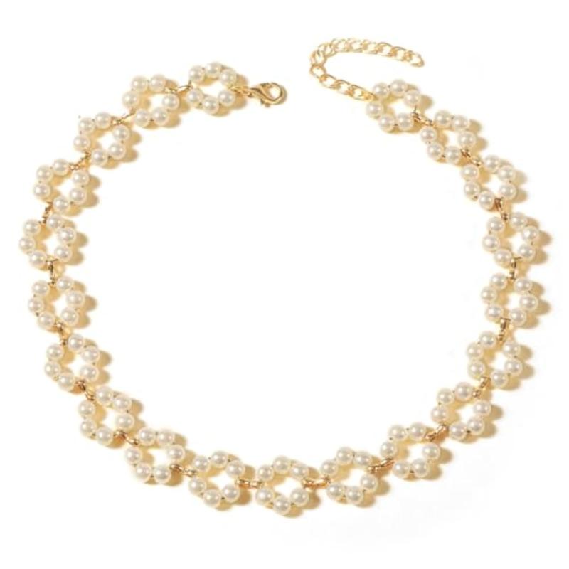 Elevate your style with this trendy pearl chain pendant choker necklace designed for women. It adds a touch of elegance to any outfit.