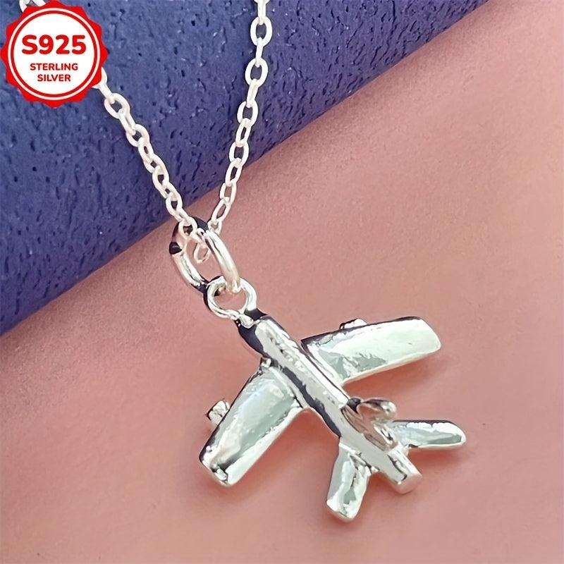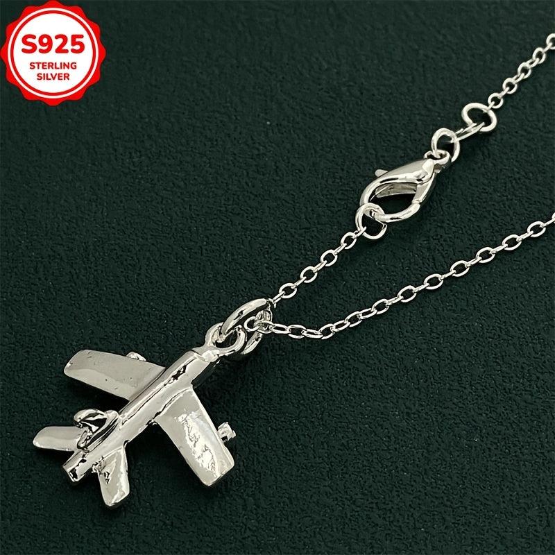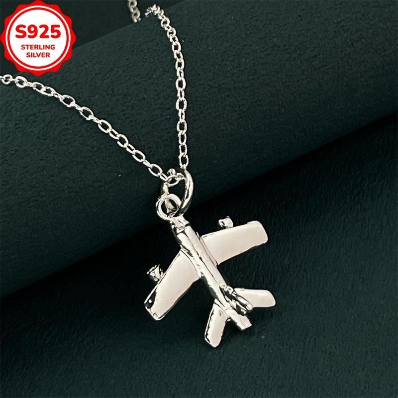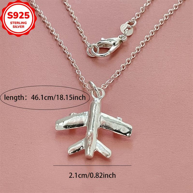 925 Low Allergy Aircraft Necklace. This stylish sterling silver necklace features an airplane pendant that is ideal for daily wear and gifting. Perfect gift for women. Comes with an oxidati