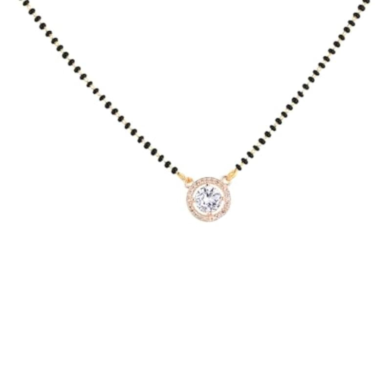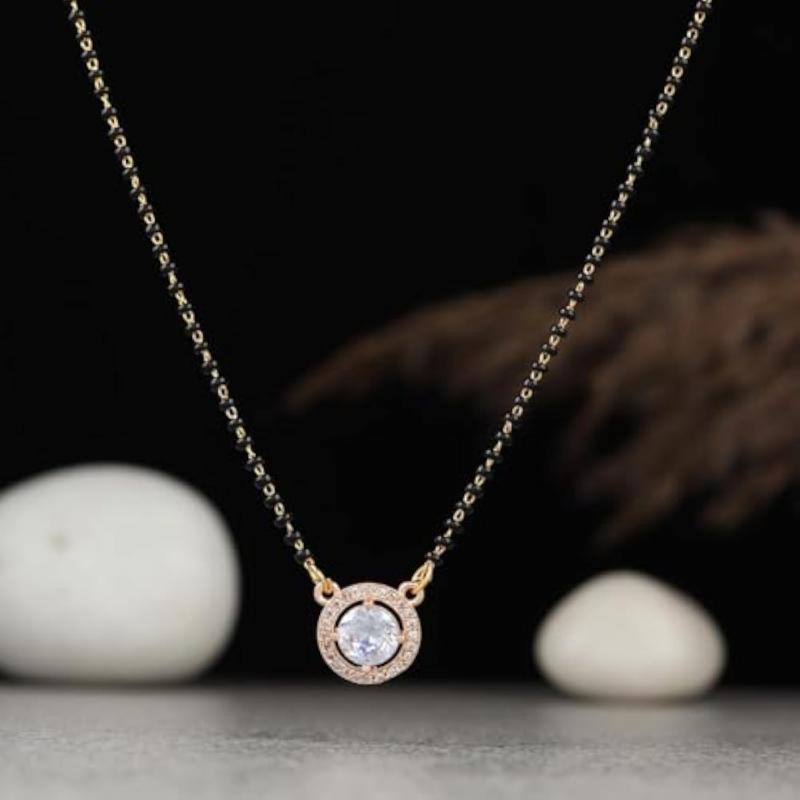 Elegant and stylish mangalsutra necklace featuring a stone pendant and beads, designed with an extendable chain for adjustable length.