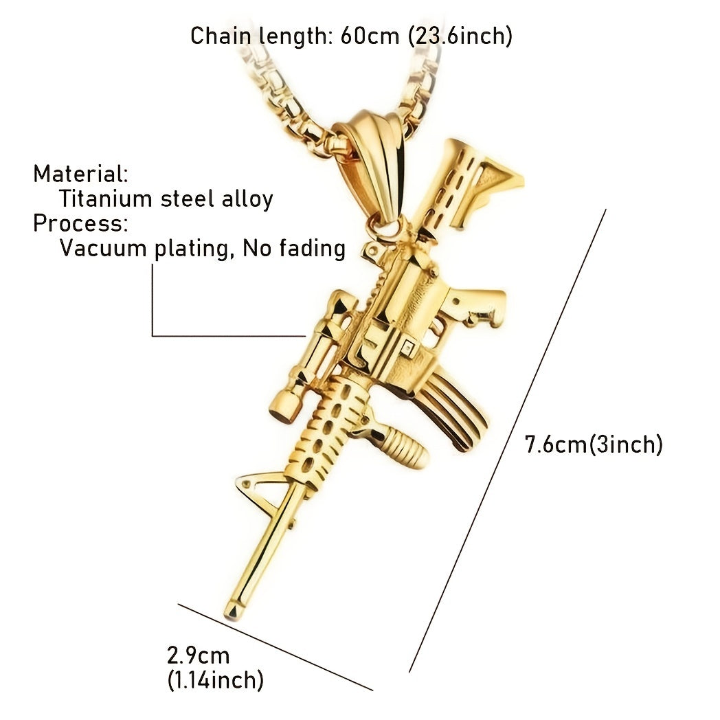 This stylish submachine gun pendant necklace is a great accessory for men, featuring a stainless steel chain. Perfect gift for any occasion.