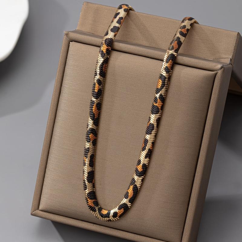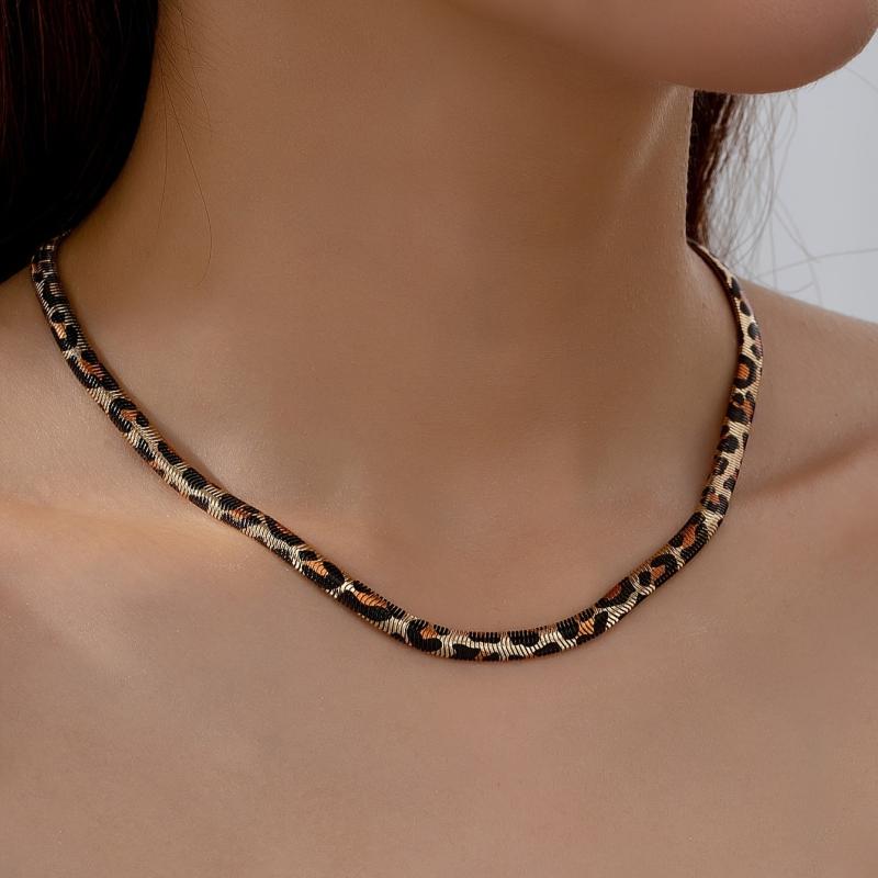 Add a touch of wild style to your summer outfits with this versatile leopard print snake chain necklace.