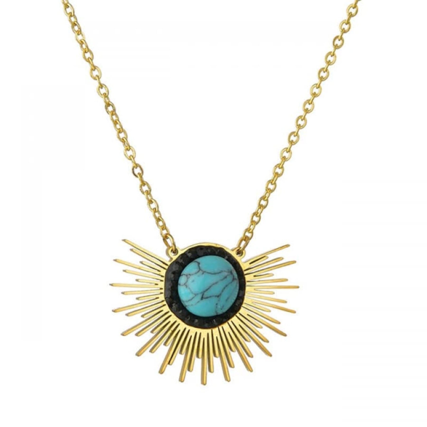 This beautiful stainless steel sun charm pendant necklace is a perfect gift for birthdays or special occasions. The intricate design adds a touch of elegance to any outfit.