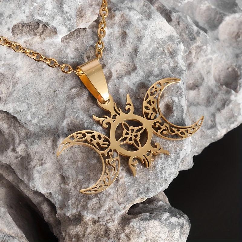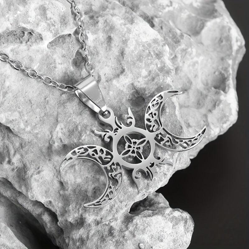 Embrace the magic with this Celtic knot pendant necklace, perfect for Halloween. The intricate design features a sun, moon, and witch knot for a touch of mysticism.
