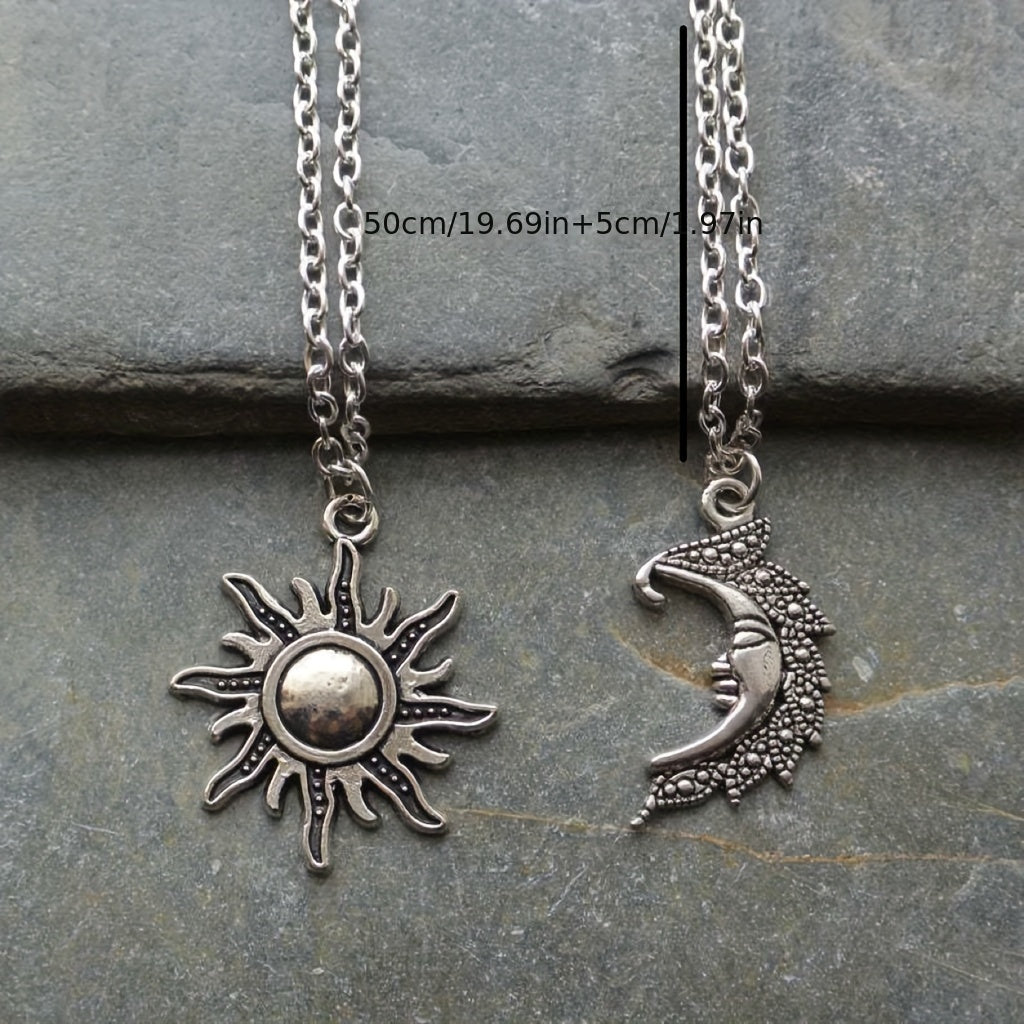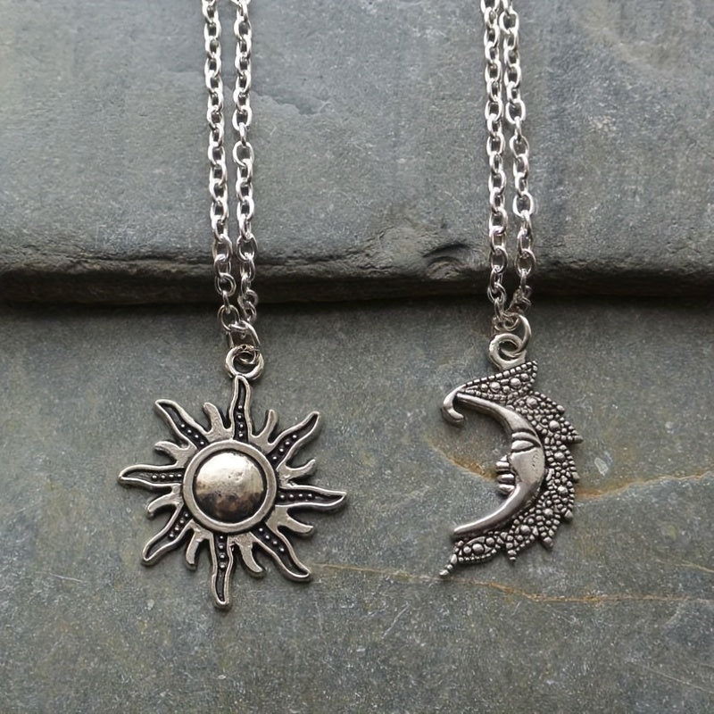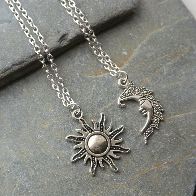 This sun and moon couple necklace features a vintage design, perfect for friends or couples. The pendant is ideal for men.