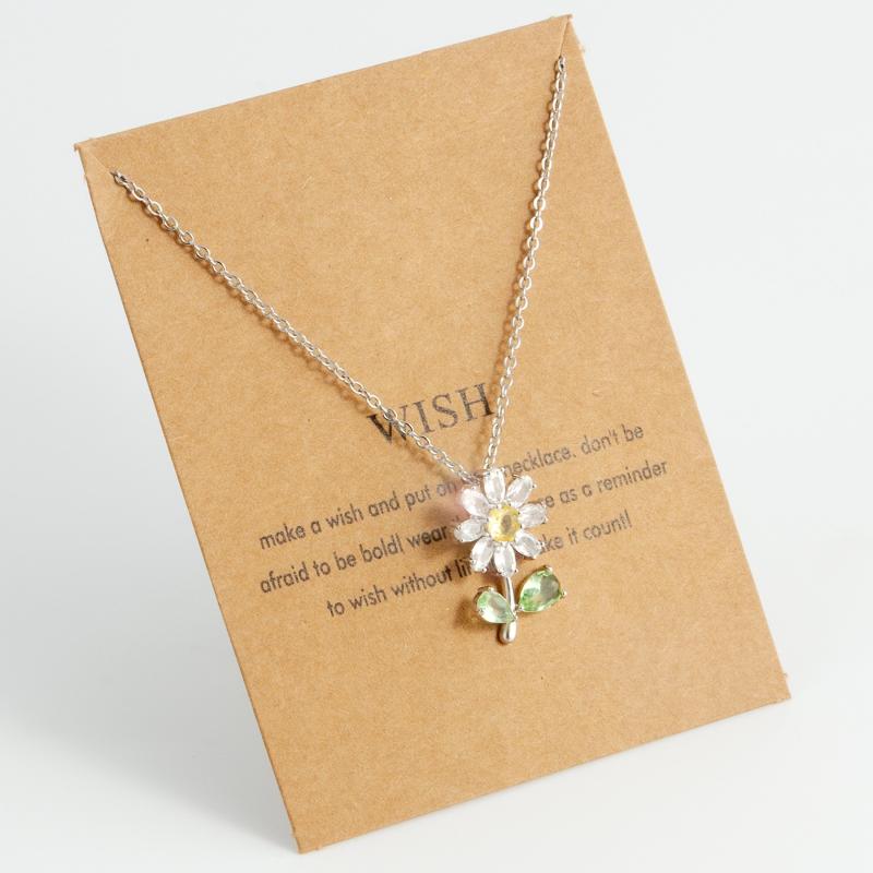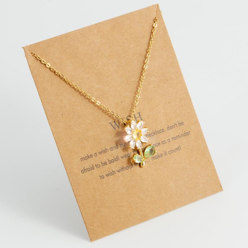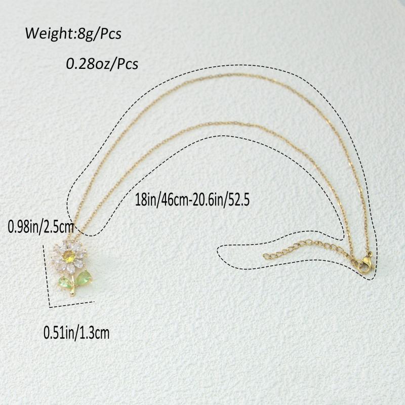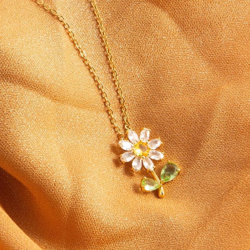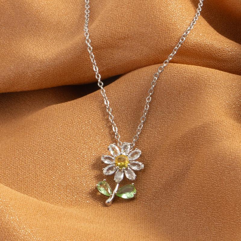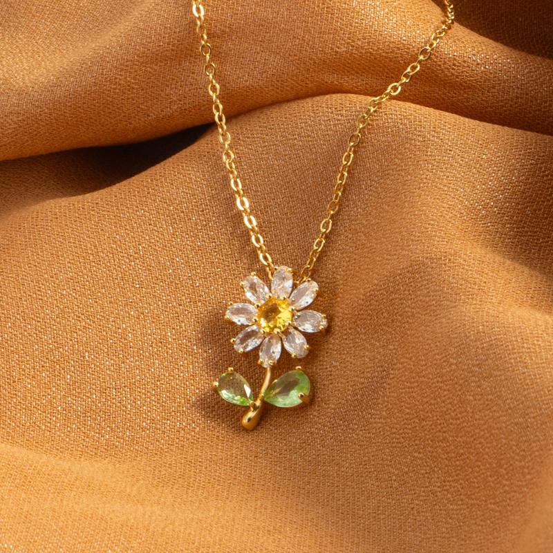 Elegant pendant necklace featuring a sunflower design with synthetic zirconia on a hypoallergenic stainless steel chain. Ideal for everyday wear or special occasions.
