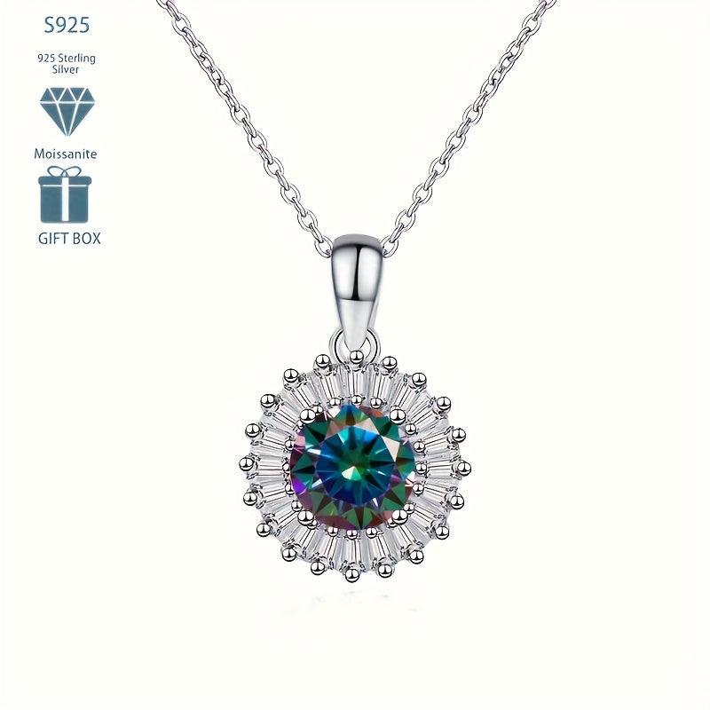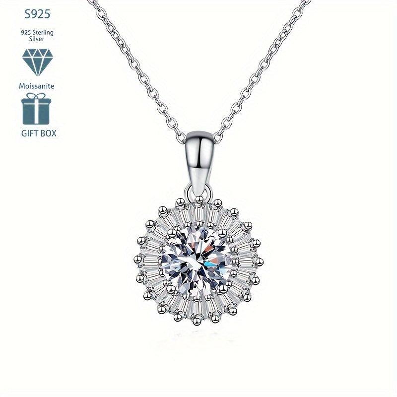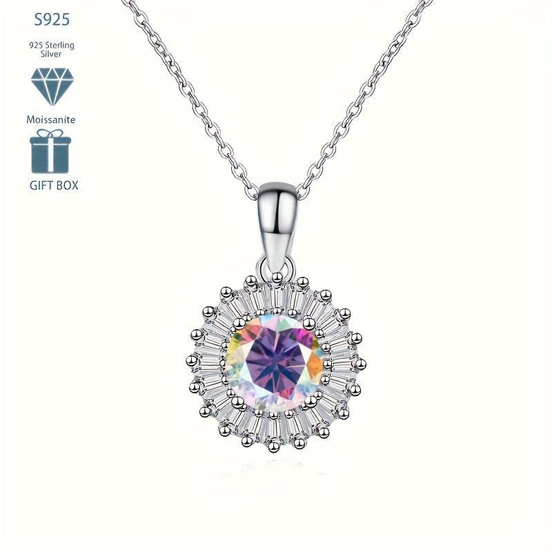 This pendant necklace features celestial symbols with a sparkling Moissanite set in 925 sterling silver. No power needed, making it an ideal gift for various occasions.