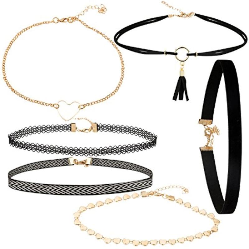 Elevate your style with this set of 6 choker necklaces featuring tattoo, lace, velvet, and love heart designs. Perfect for adding a touch of edgy glamour to any outfit.
