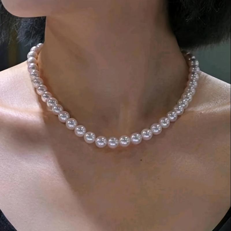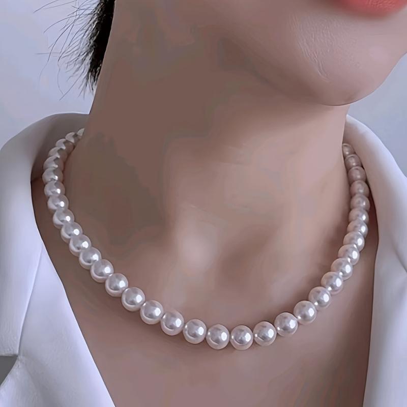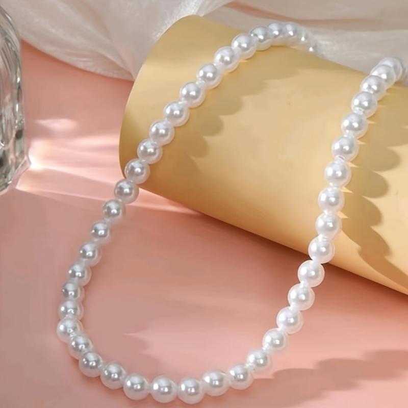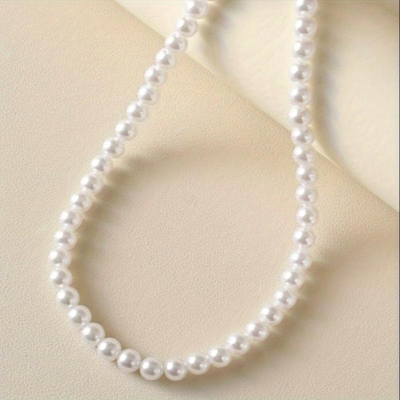 Add a touch of elegance to your outfit with this stunning faux pearls beaded necklace. Perfect for adding a stylish flair to your look.