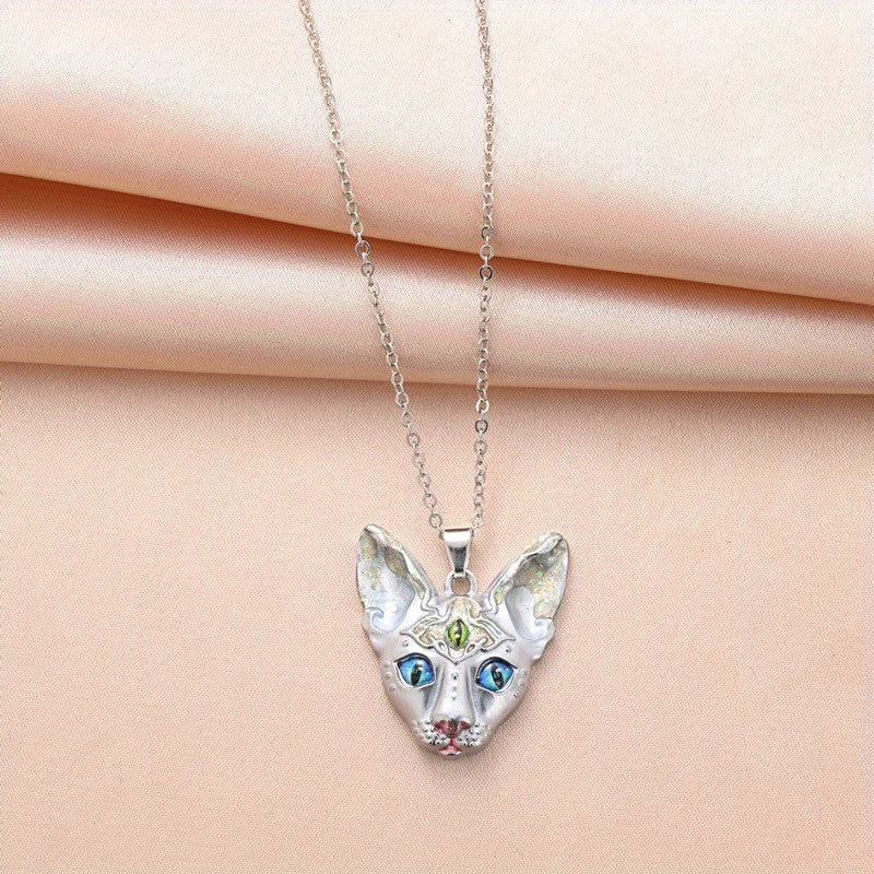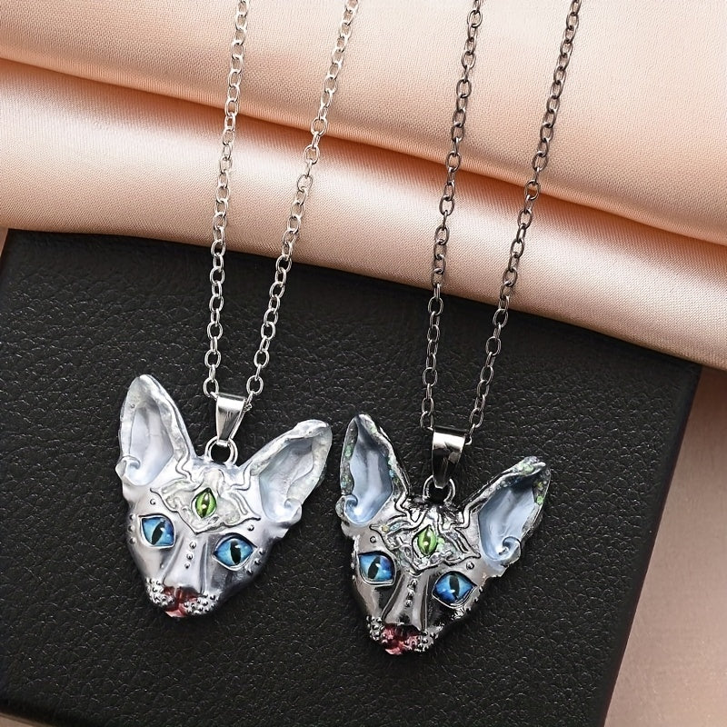 This mysterious and handsome pendant necklace features a three-eyed cat head design, making it a versatile accessory for daily wear. It also makes a great holiday gift.