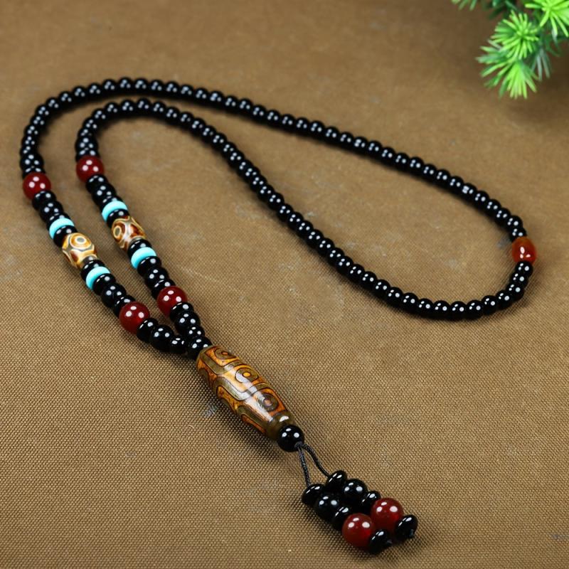 This necklace features a traditional Tibetan agate nine-eyed bead pendant, a symbol of protection and healing. The natural stone is perfect for daily wear or as a gift for special occasions.
